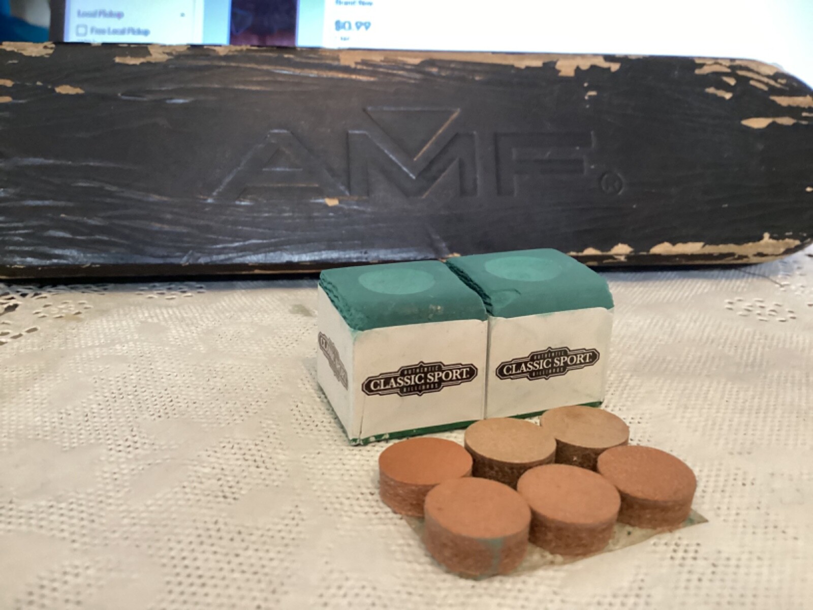 как выглядит American Heritage Pool Table Supplies Lot chalks, tips, rack,brush for billiards фото