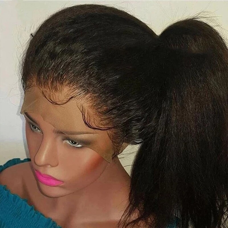 Long Yaki Straight Lace Front Wig Black Synthetic Wigs Natural Daily Heat Fiber