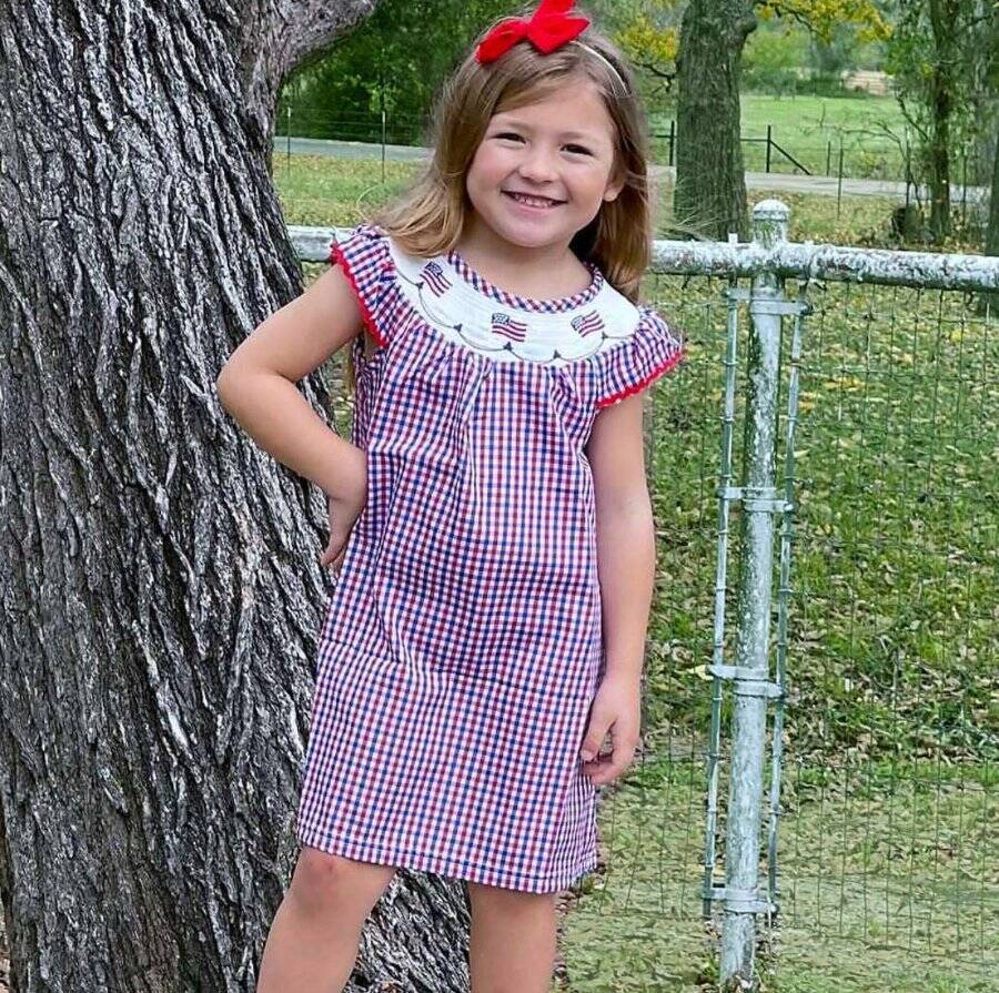 как выглядит AnnLoren Red Blue 4th of July American Flag Gingham Dress Girls Size 6 фото