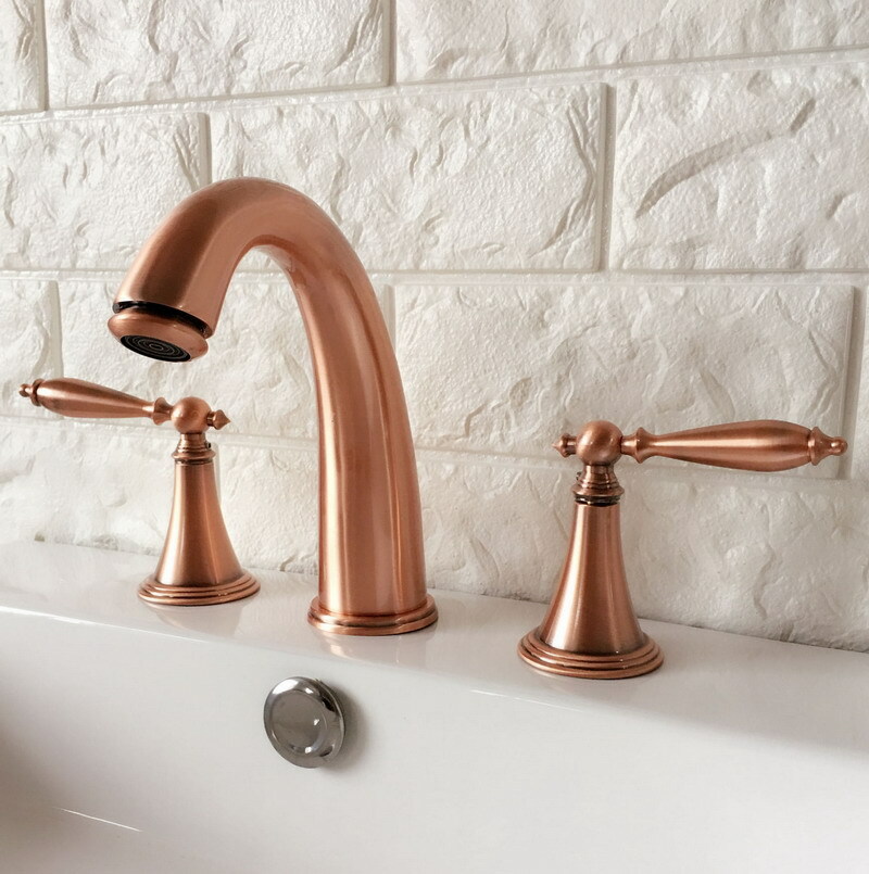 как выглядит Antique Red Copper Widespread Bathroom Sink Faucet Mixer Tap 3 Holes srg036 фото