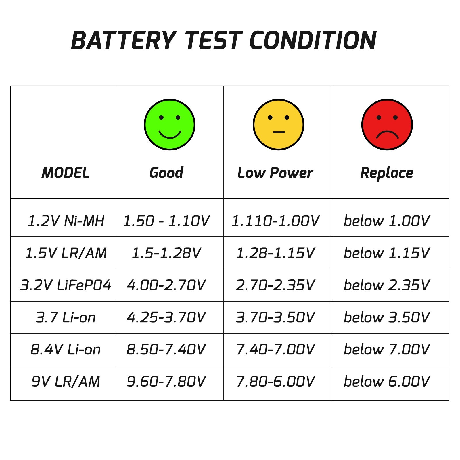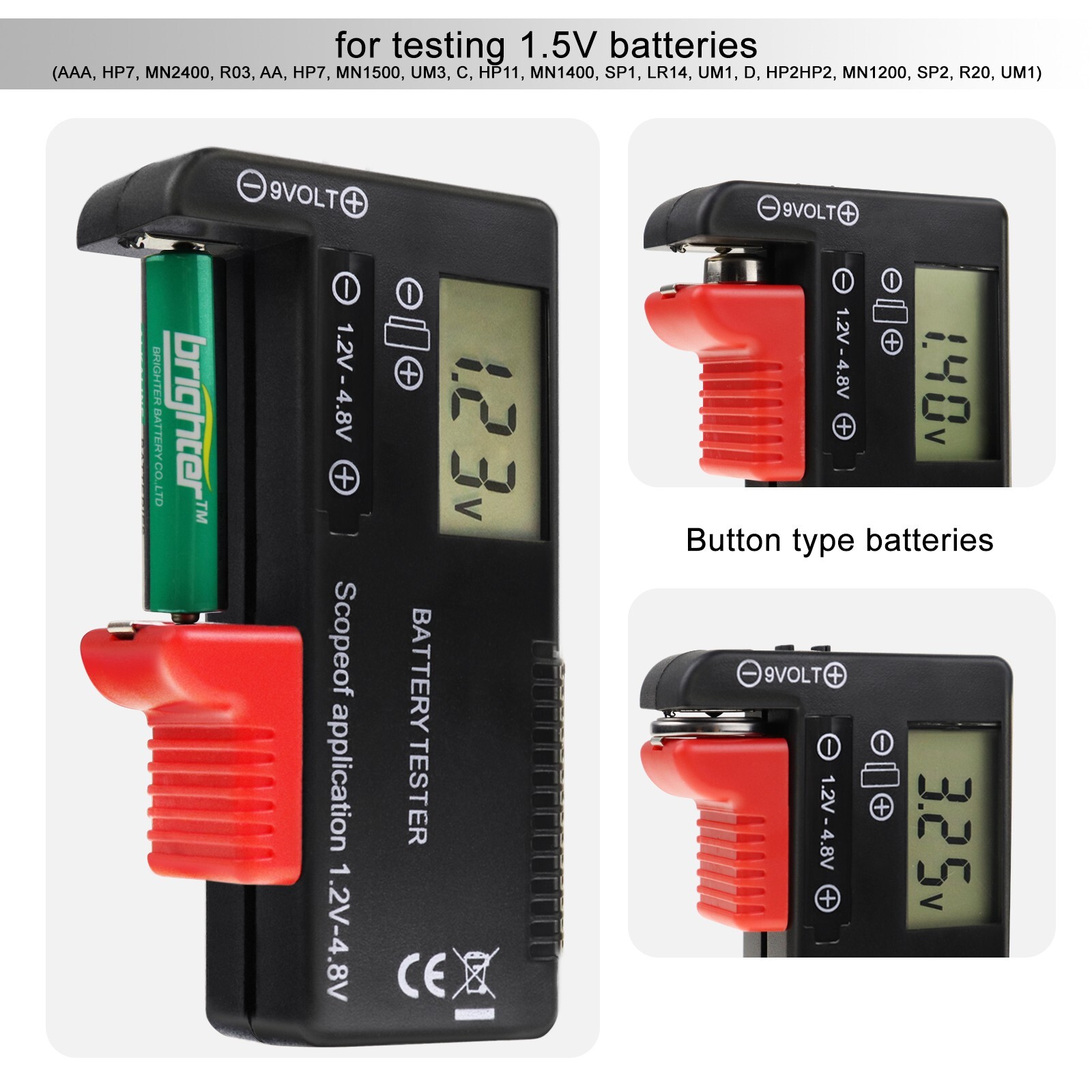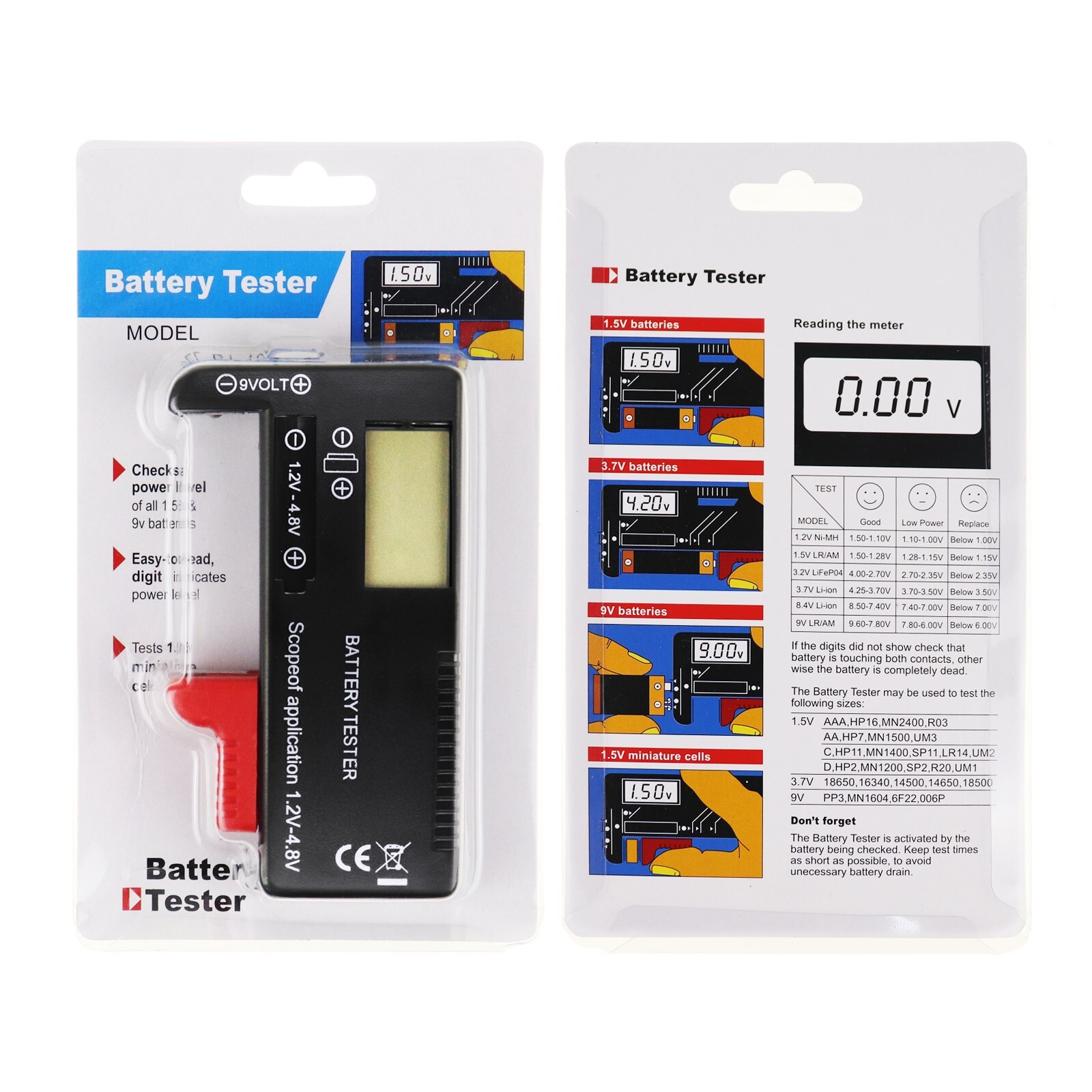 Battery Type: AAA AA C D 9V 3.7V 1.5V Button Cell