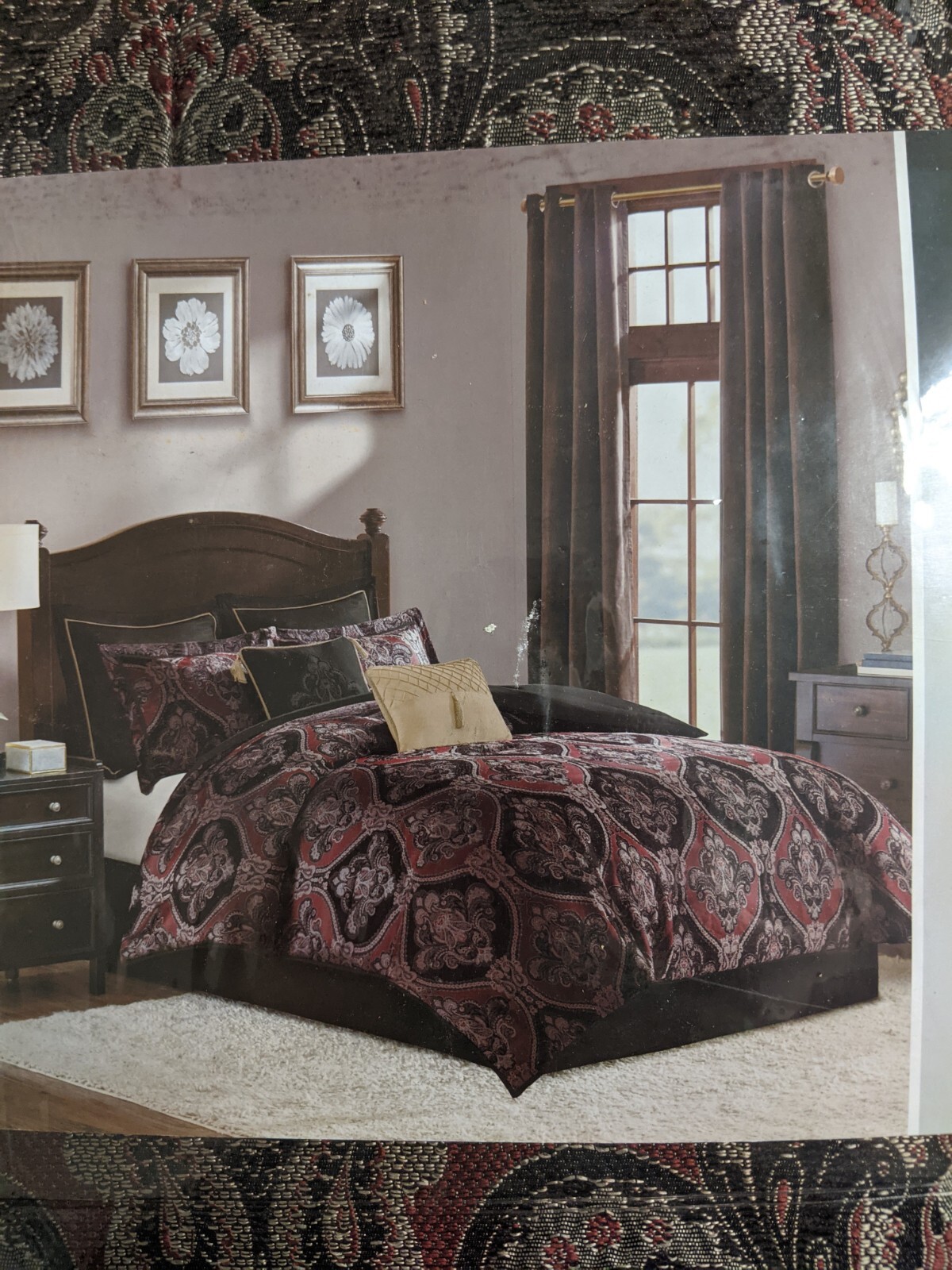 Set Includes: Bed Skirt, Comforter, Pillow Sham, Decorative Pillow