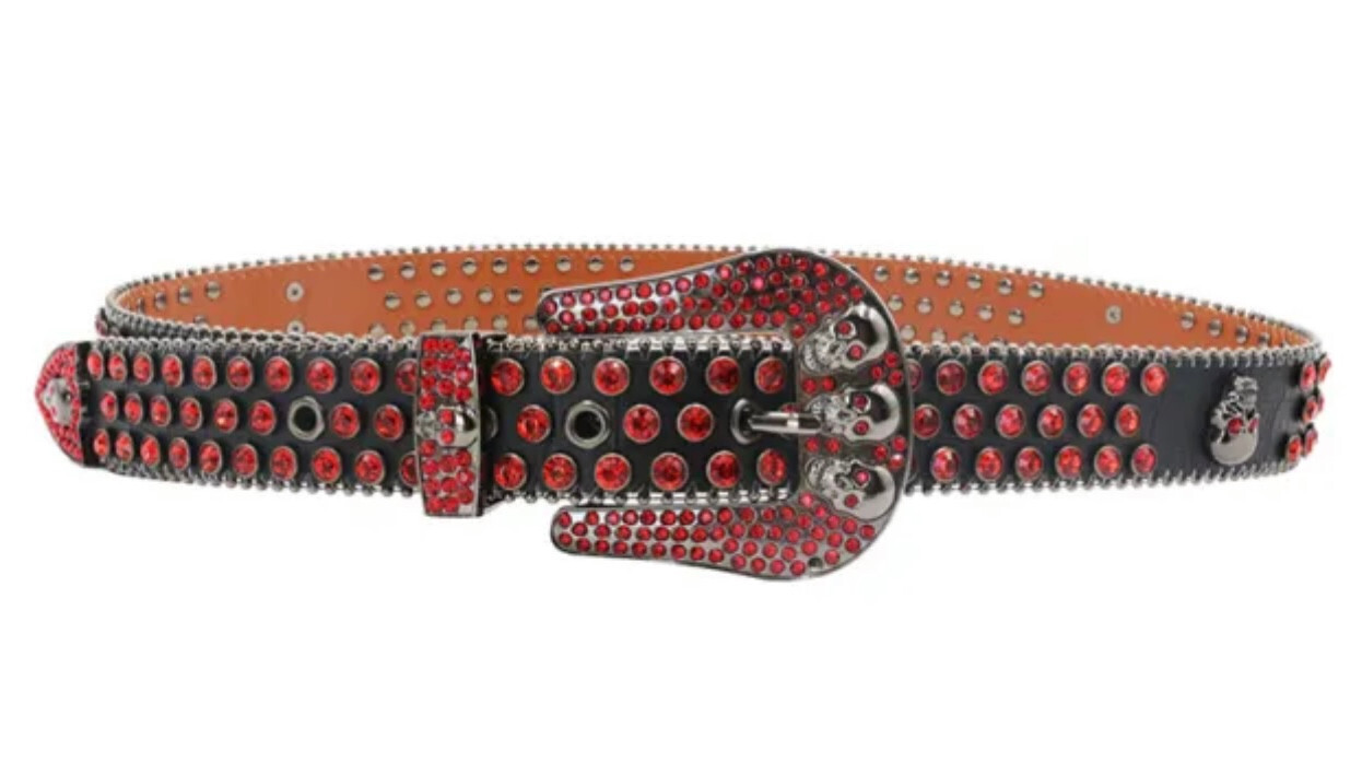 как выглядит Skull Black Genuine Leather Red Rhinestone Belt фото