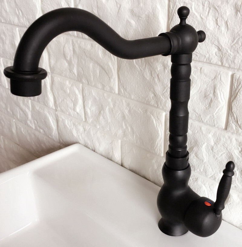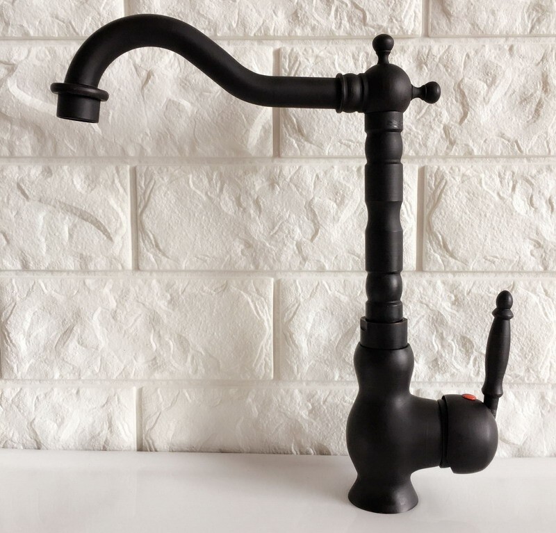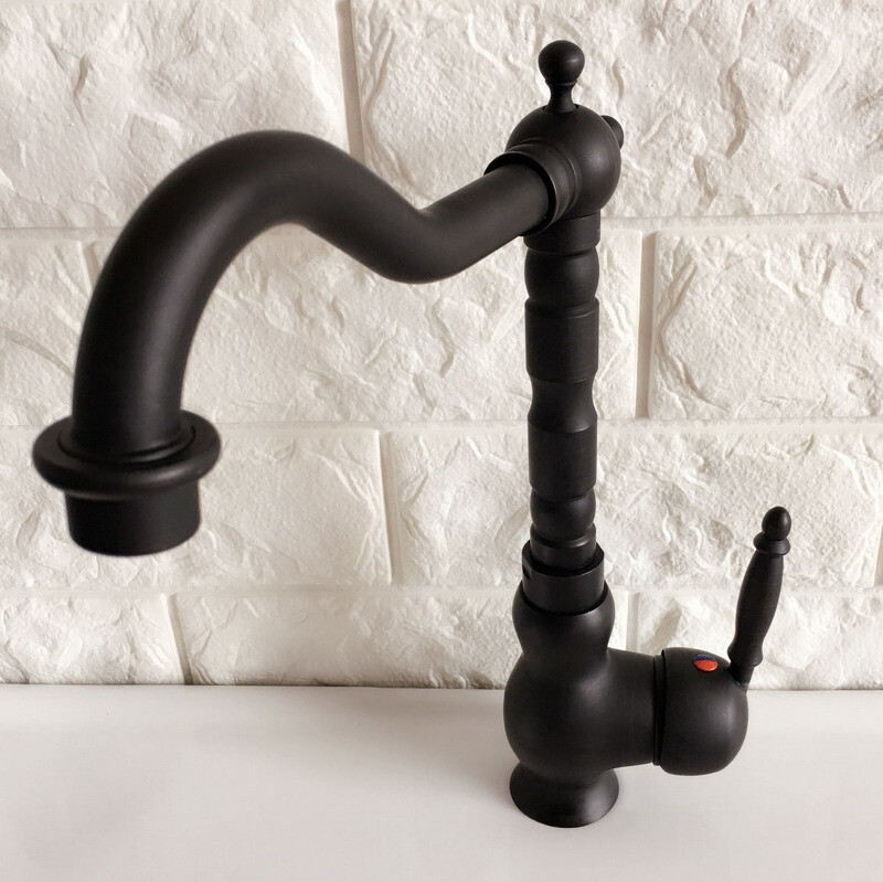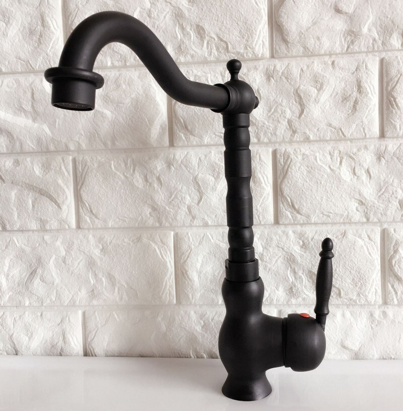 как выглядит Black Oil Rubbed Brass Kitchen Bar Vessel Sink Swivel Faucet Mixer Tap snf359 фото