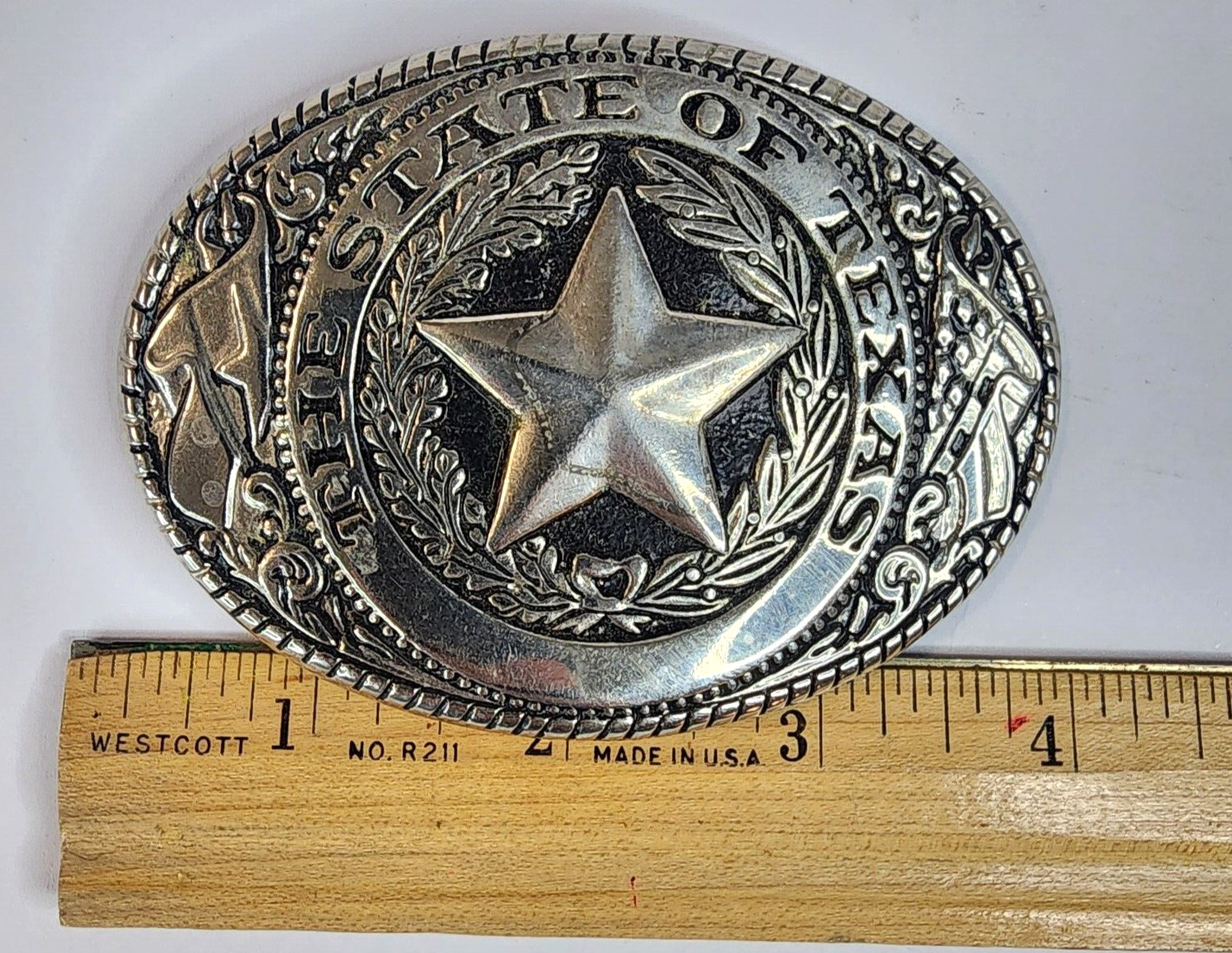 как выглядит Western Products Silver Tone State of Texas Seal Belt Buckle фото