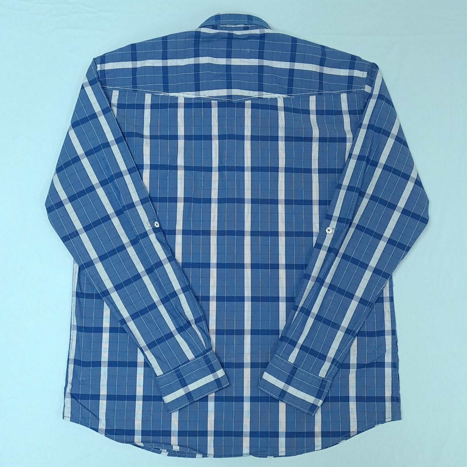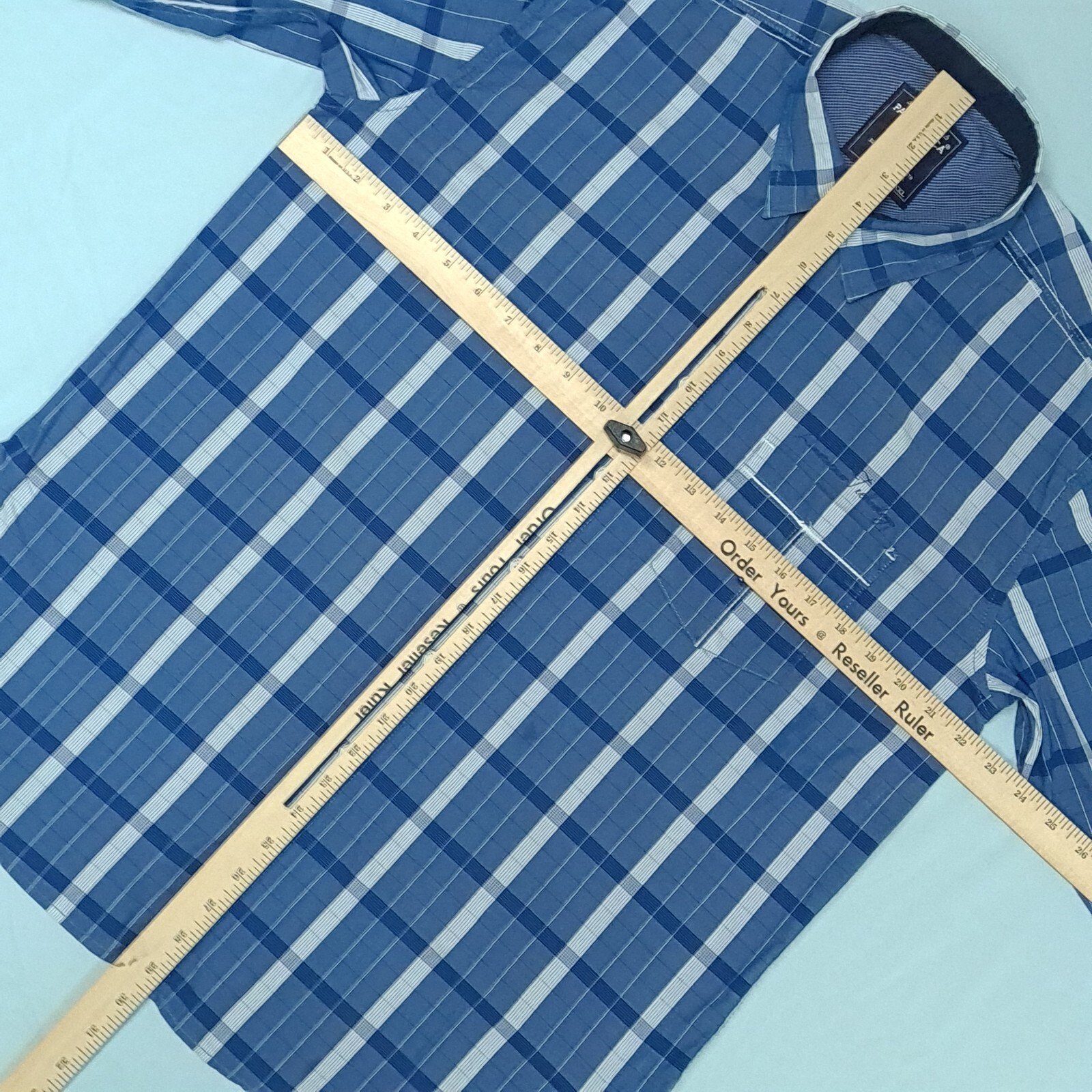 Pan America Legend Mens Shirt Size XXL Blue Stripe/Check Soft Cotton Long Sleeve