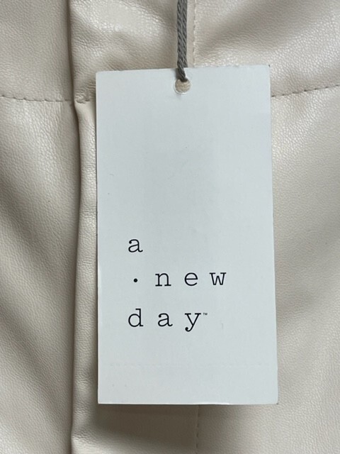 Women's High-Rise Faux Leather Tapered Ankle Pants - A New Day Cream 14 NWT