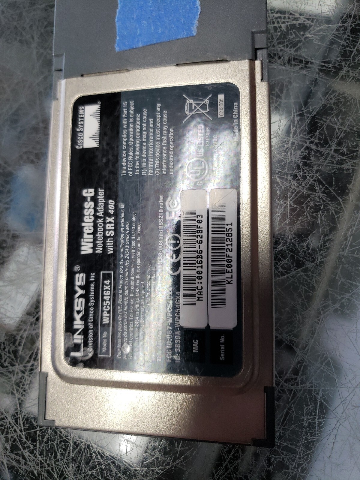 Linksys Wireless-G Notebook Adapter 2.4GHz SRK-400 wpc54gc4 FREE SHIP