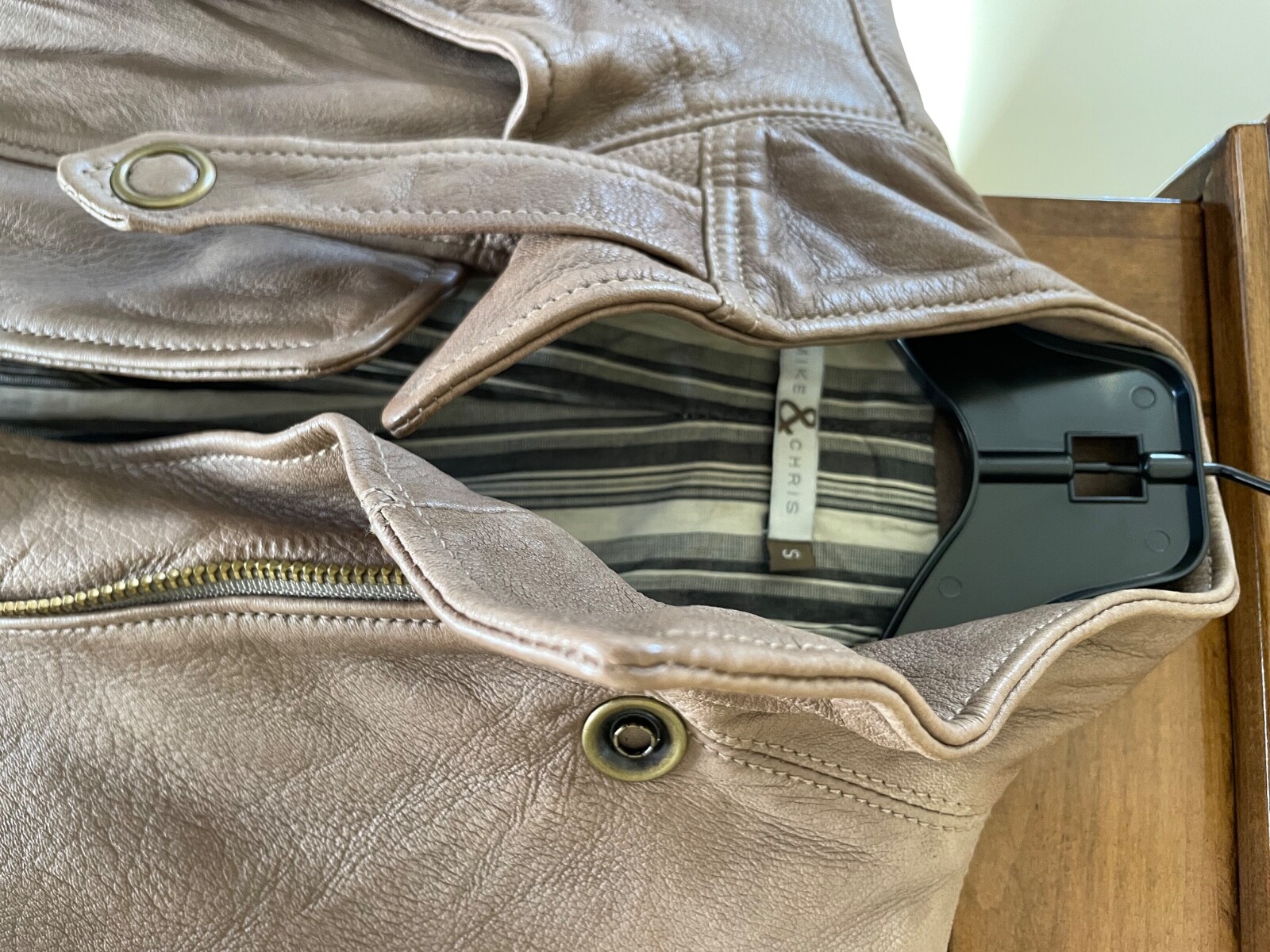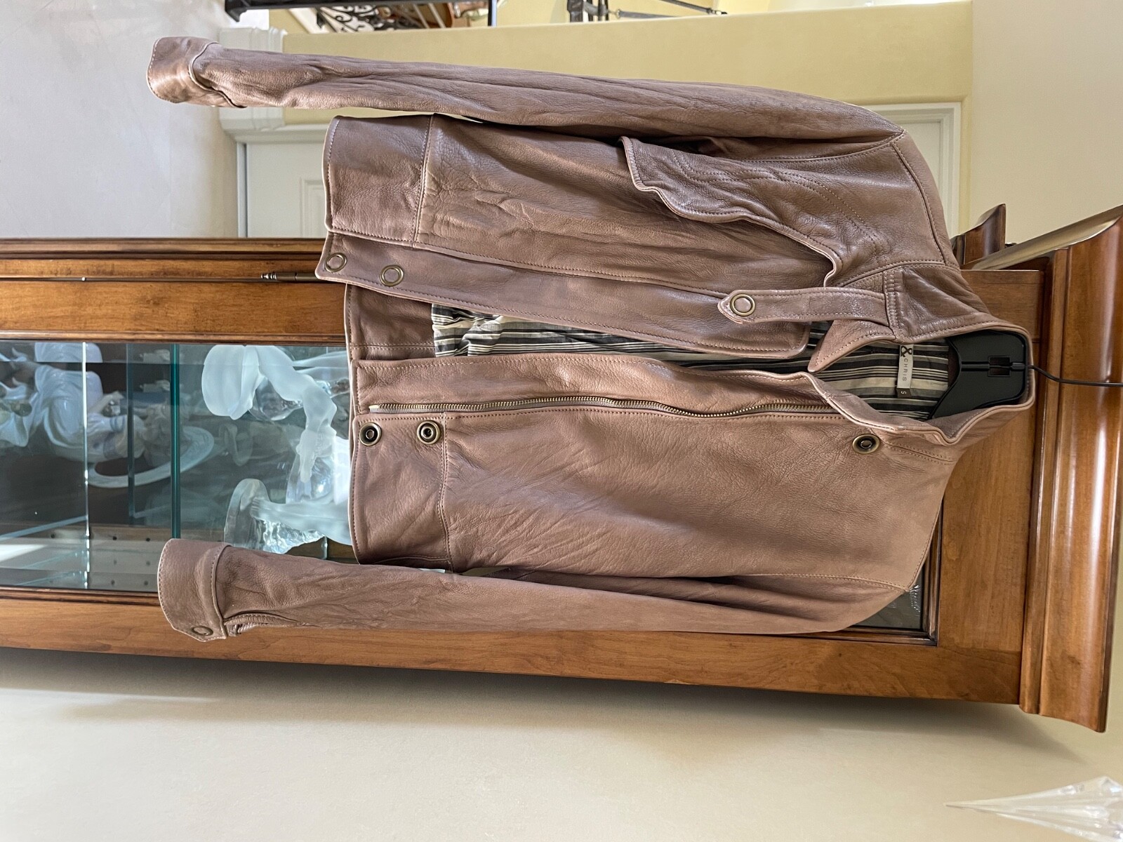 как выглядит girlss leather jacket, light brown, Mike Chris brand фото