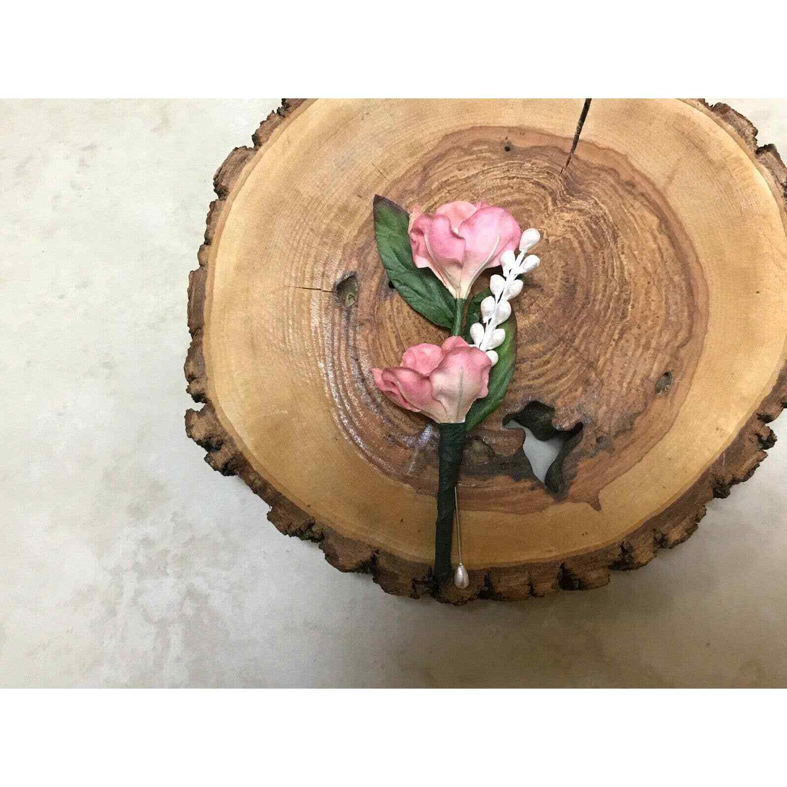 4 Real Touch Boutonniere Vintage Pink Flower Groom Best Man Prom Formal Gift
