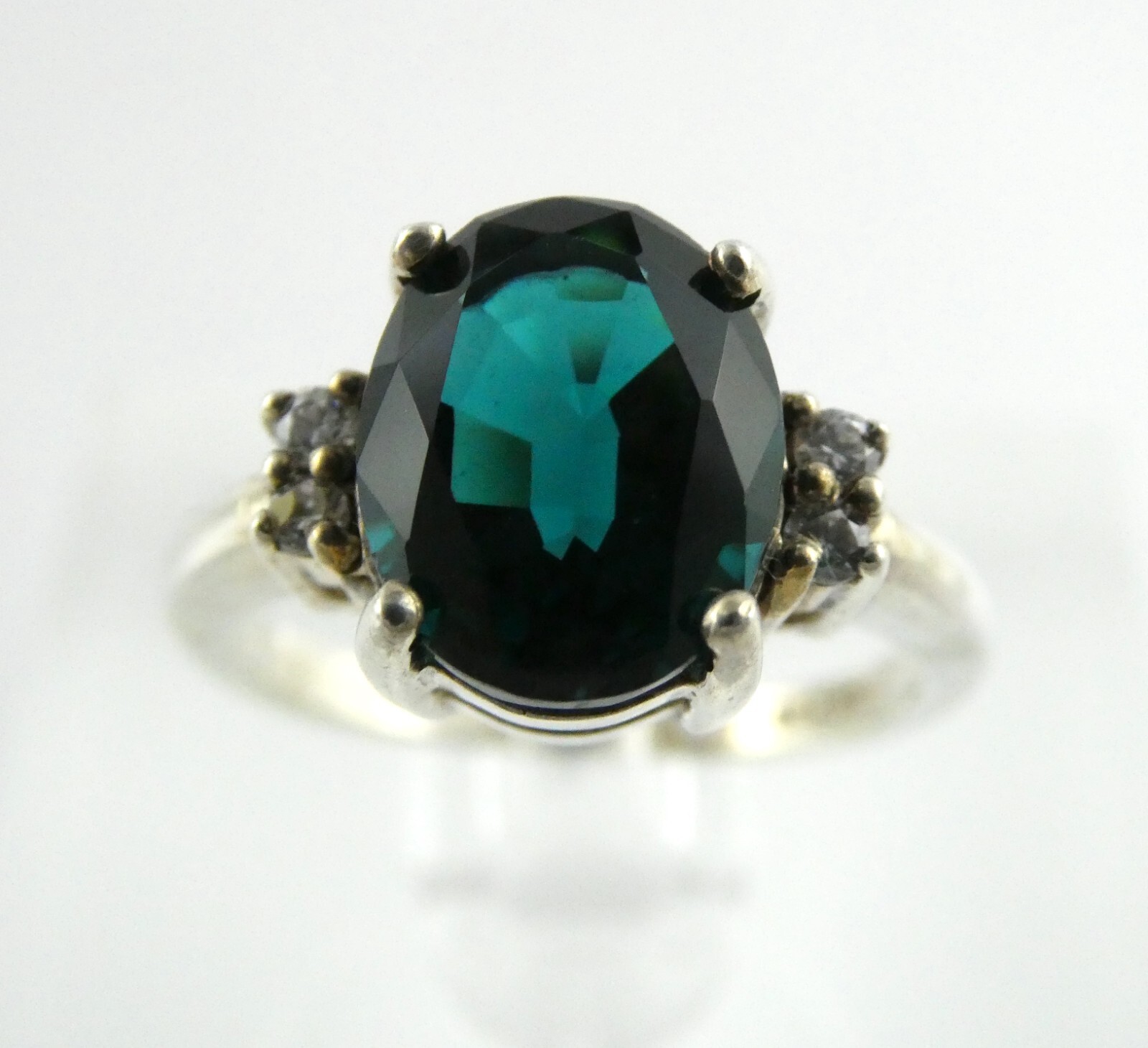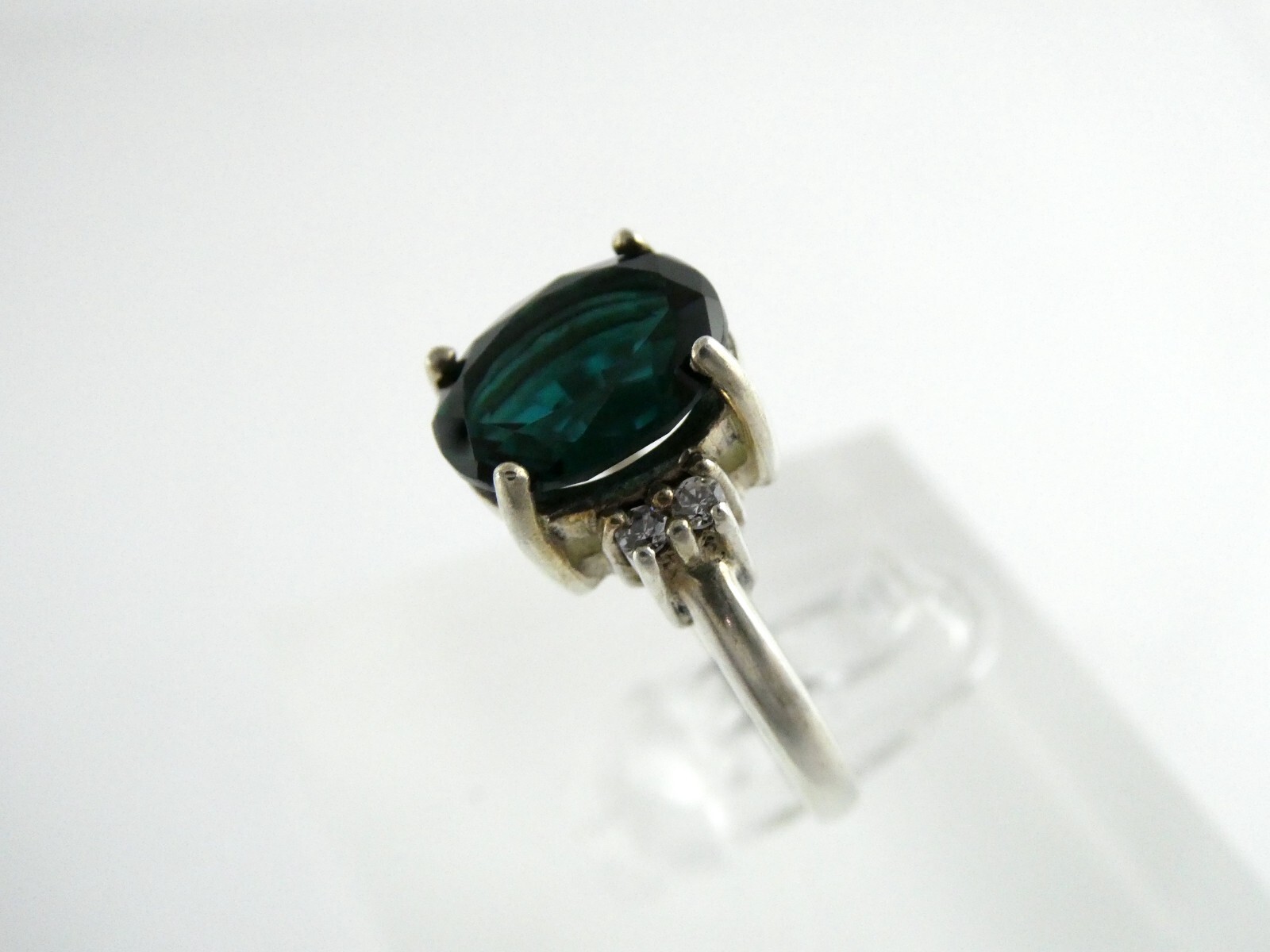 как выглядит Sterling Silver Green and White Cubic Zirconia Ring 925 Size 6 Weighs 3.9g CZ фото