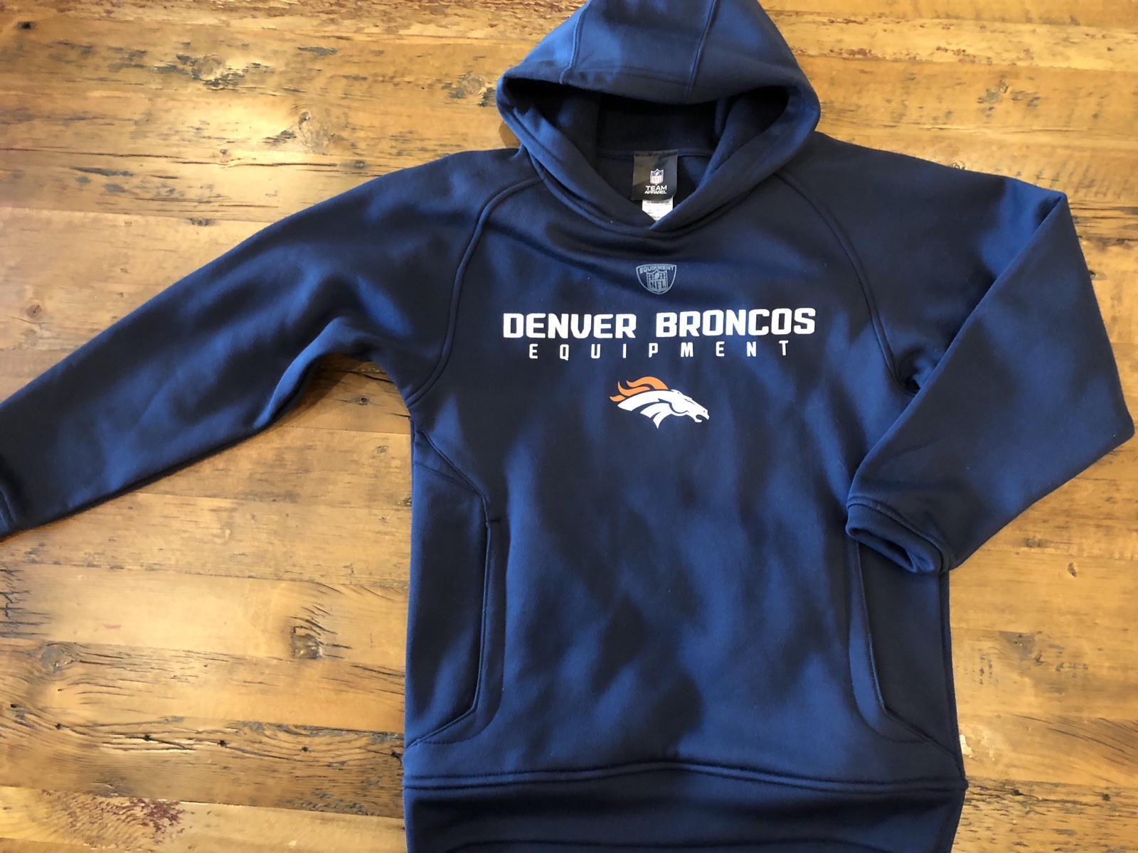 Denver Broncos Equipment NFL Navy Blue Pullover Hoodie Youth Size Medium 10/12