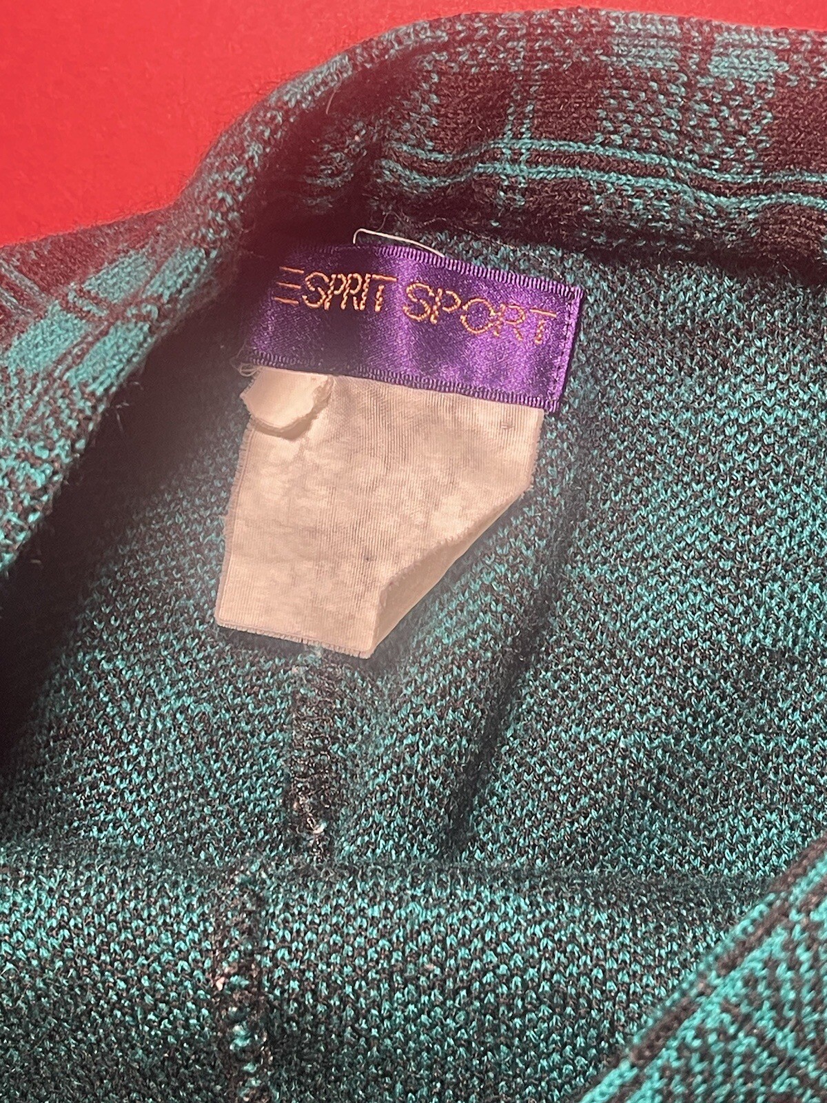 Vintage 90s Espirit Stirrup Legging Pants Teal Black Plaid Knit Size Small