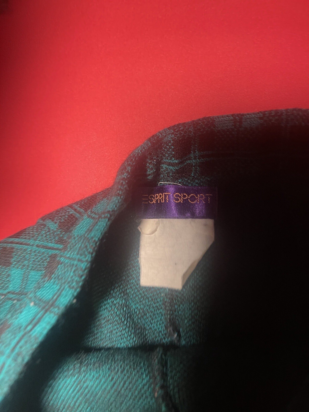 как выглядит Vintage 90s Espirit Stirrup Legging Pants Teal Black Plaid Knit Size Small фото