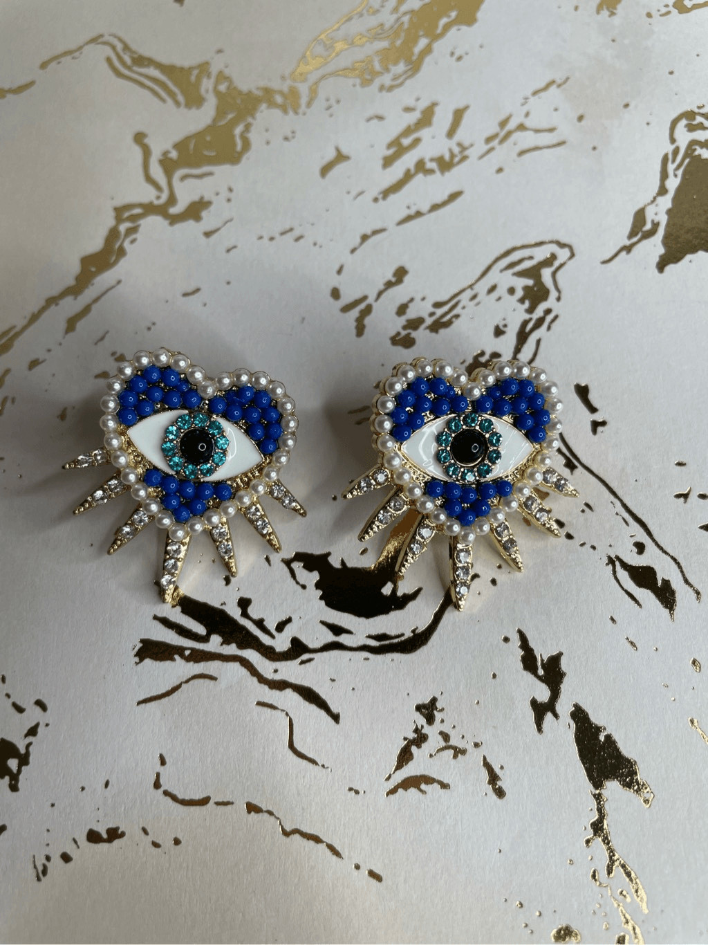 Rhinestone Heart and Heart Shaped Evil Eye Earrings