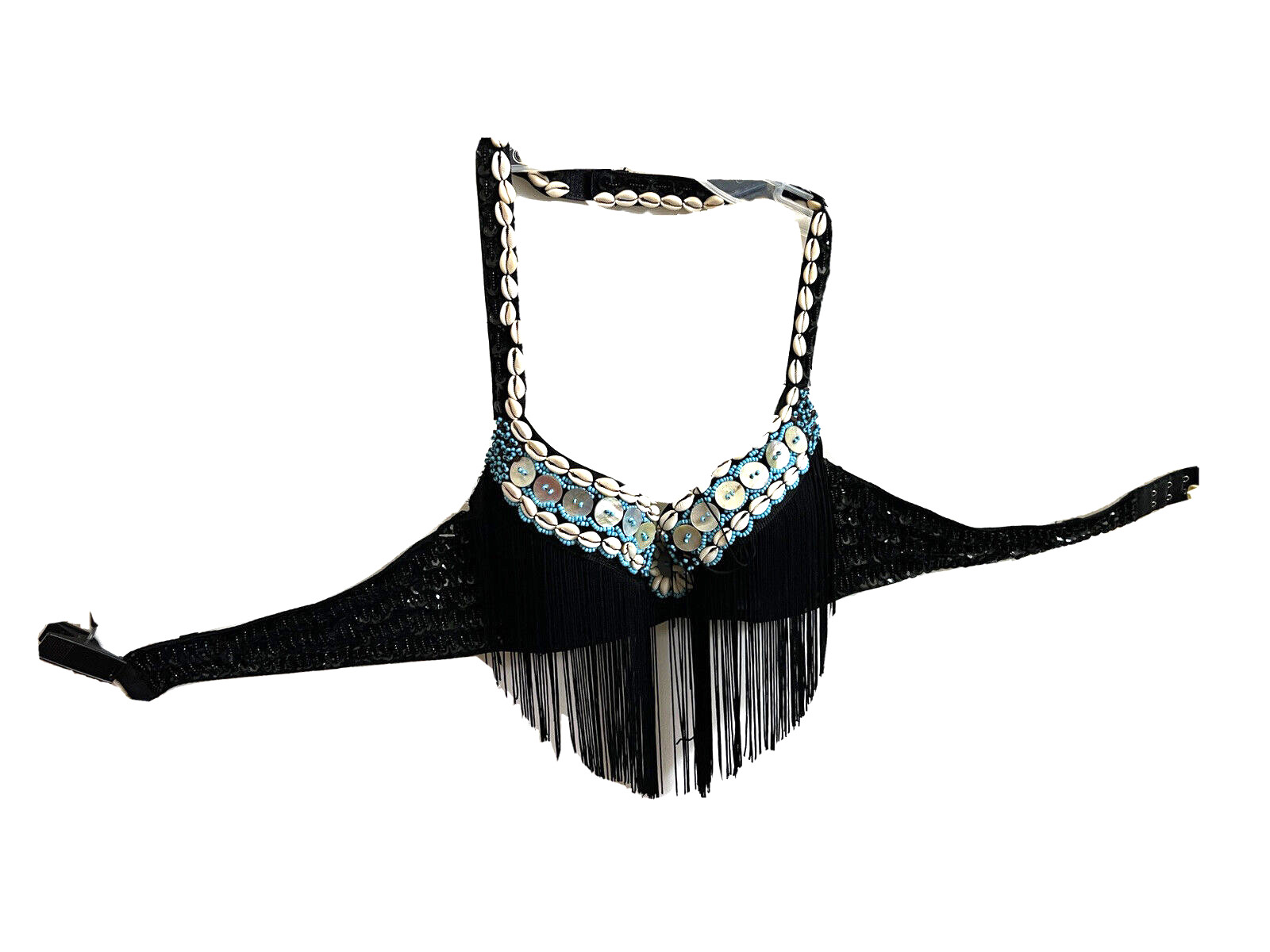 Black Women Belly Dance Costume 1 Piece Beaded Padded Bra Size XL New w. defect