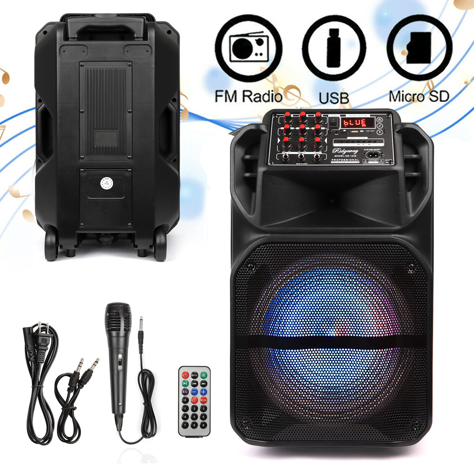 12 Portable Rechargeable Bluetooth Party Speaker FM AUX w/Microphone Remote