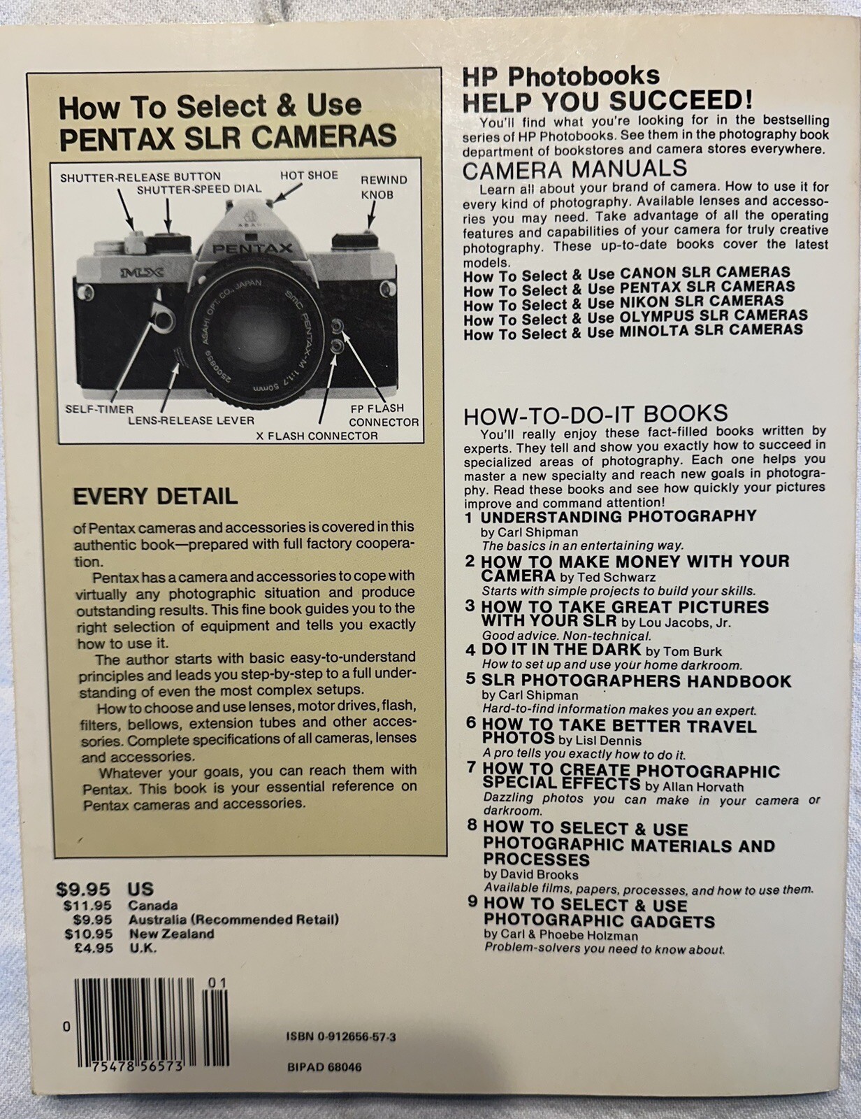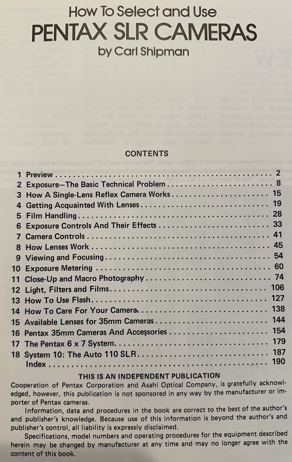 Vintage 1980 Pentax SLR Cameras Book By Carl Shipman 192 Pages