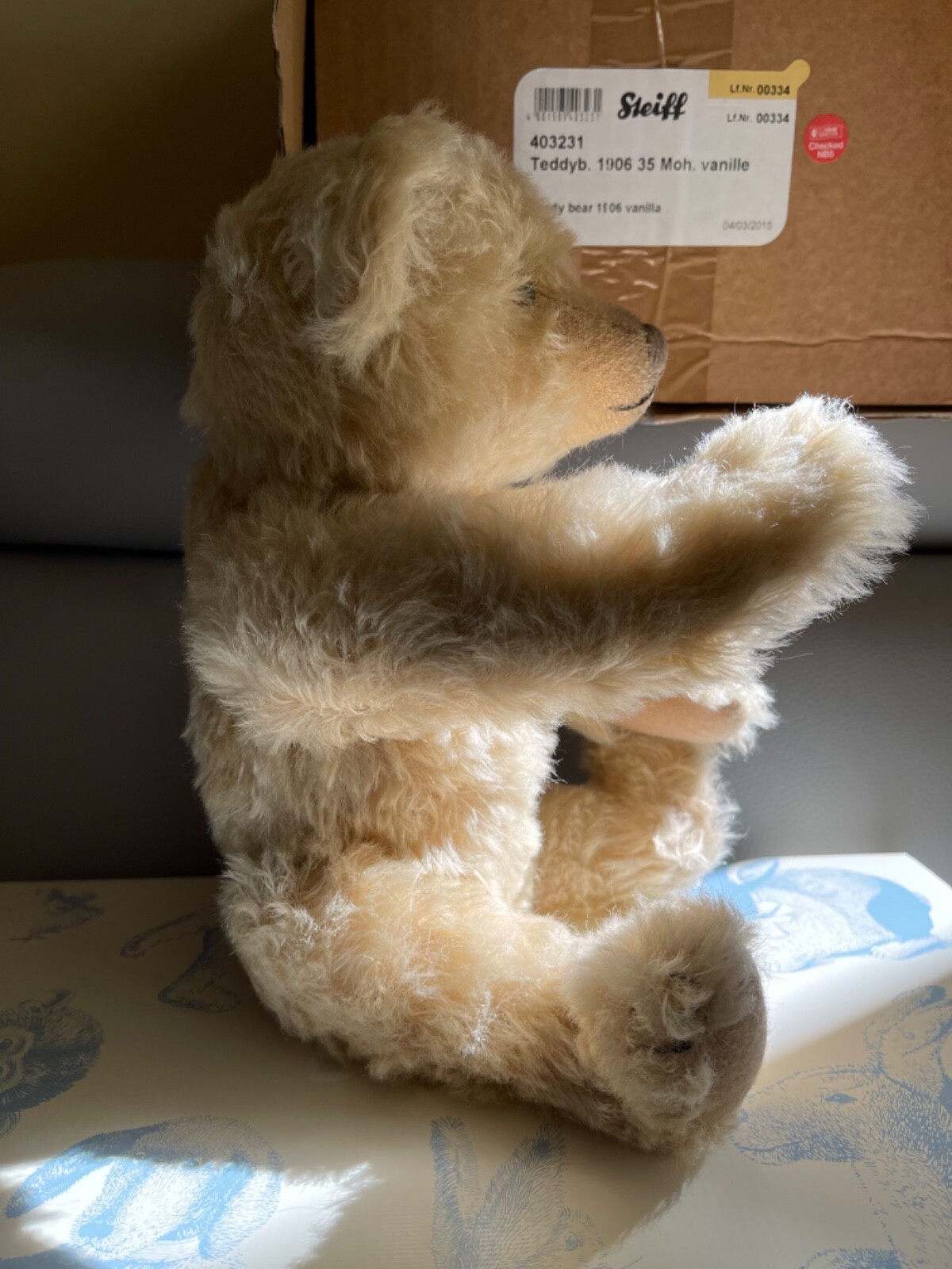 как выглядит NIB 2015 LTD ED STEIFF 1906 MR VANILLA MOHAIR TEDDY BEAR EAN 403231 фото