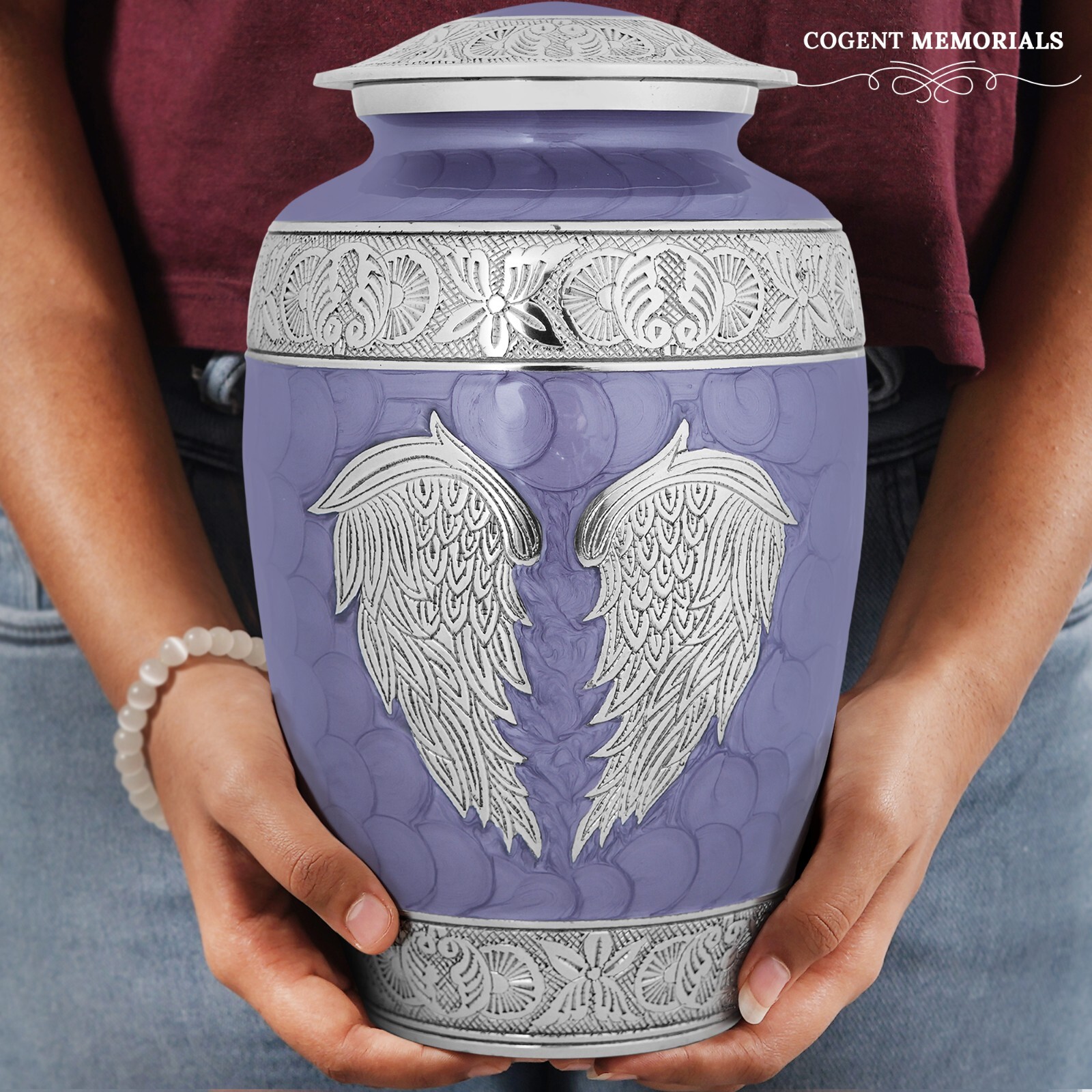 • Heavenly Peace Purple Wings of Love Large Cremation Urn for Human Ashes bag