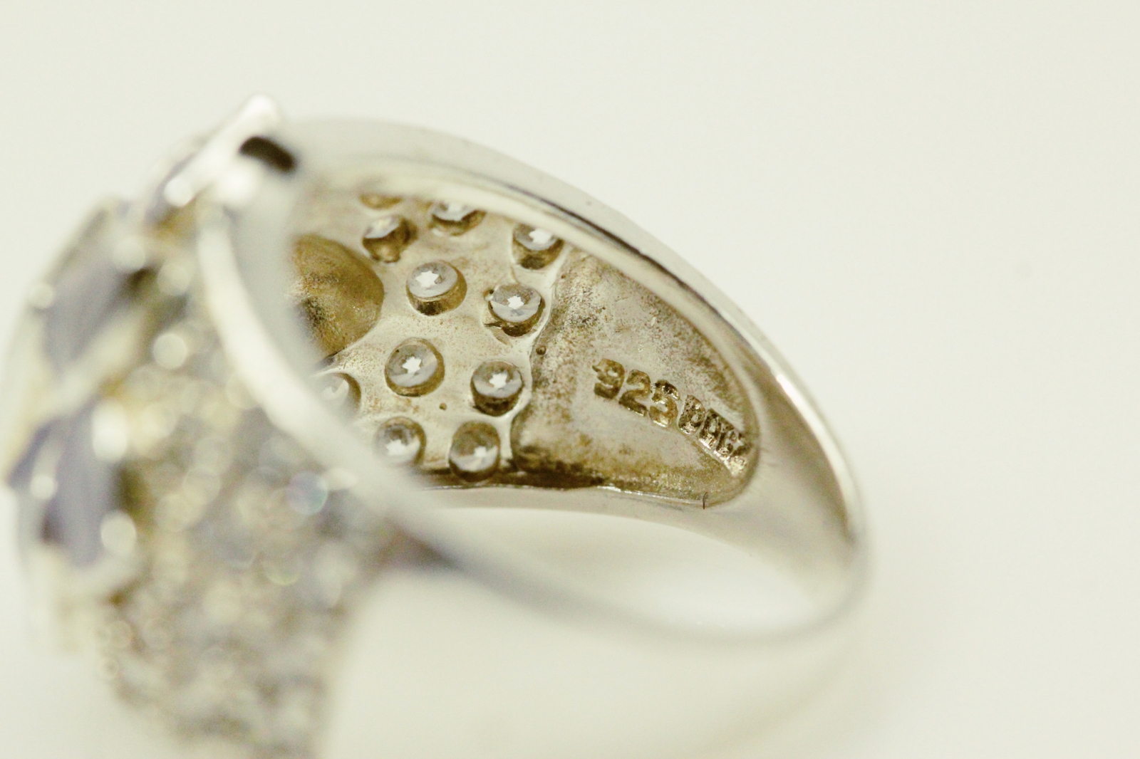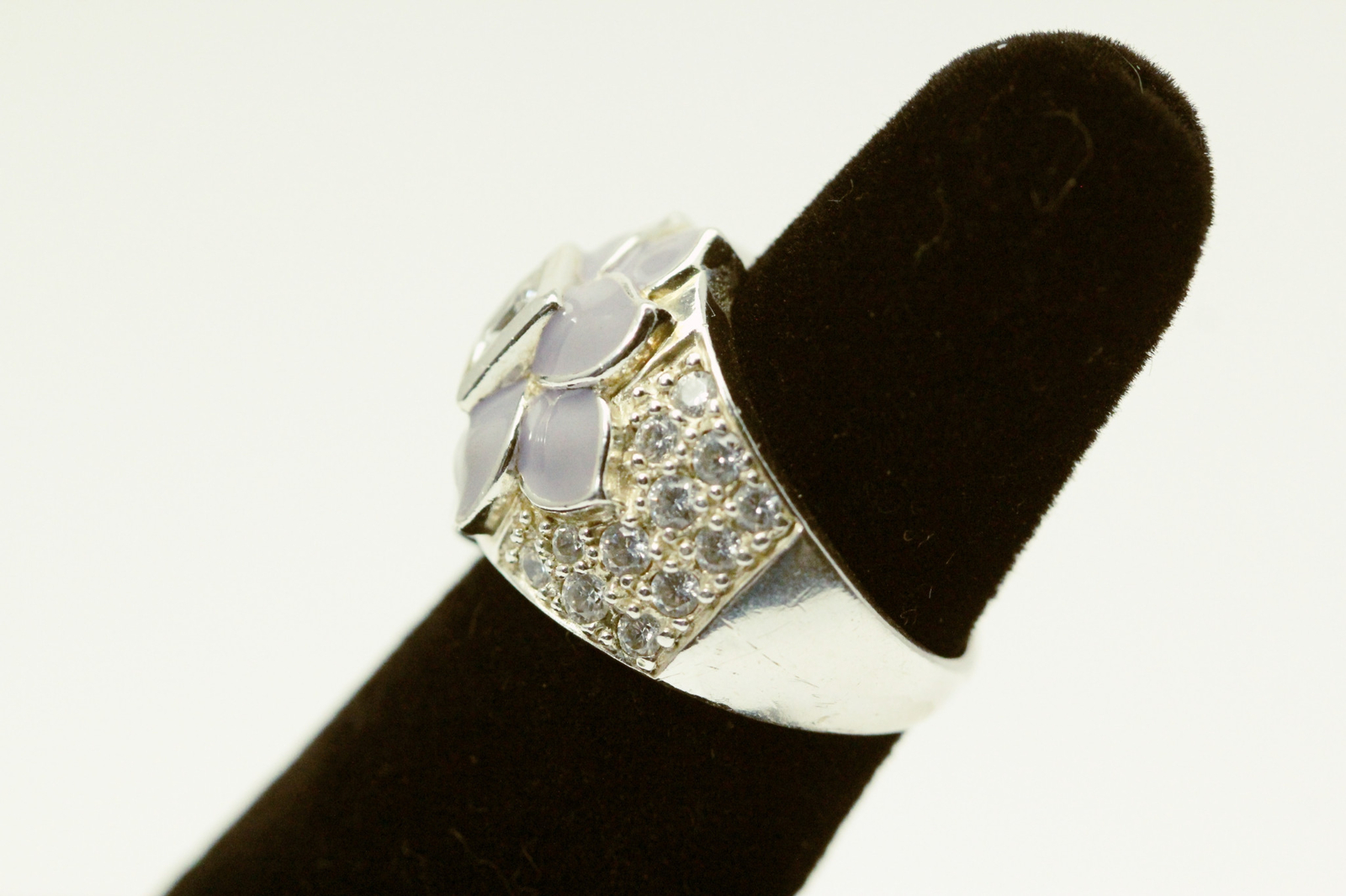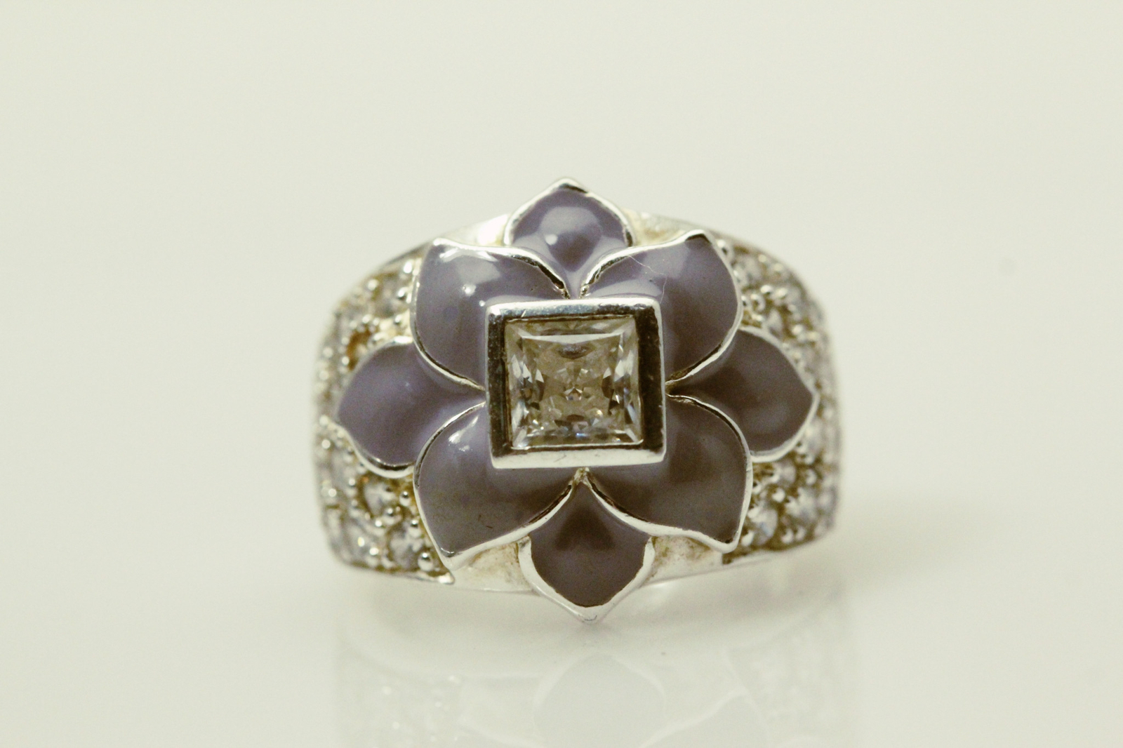как выглядит 925 Sterling Silver Size 6 Purple Flower Dome Ring W/CZ Accents 7.4 G RIN8607 фото