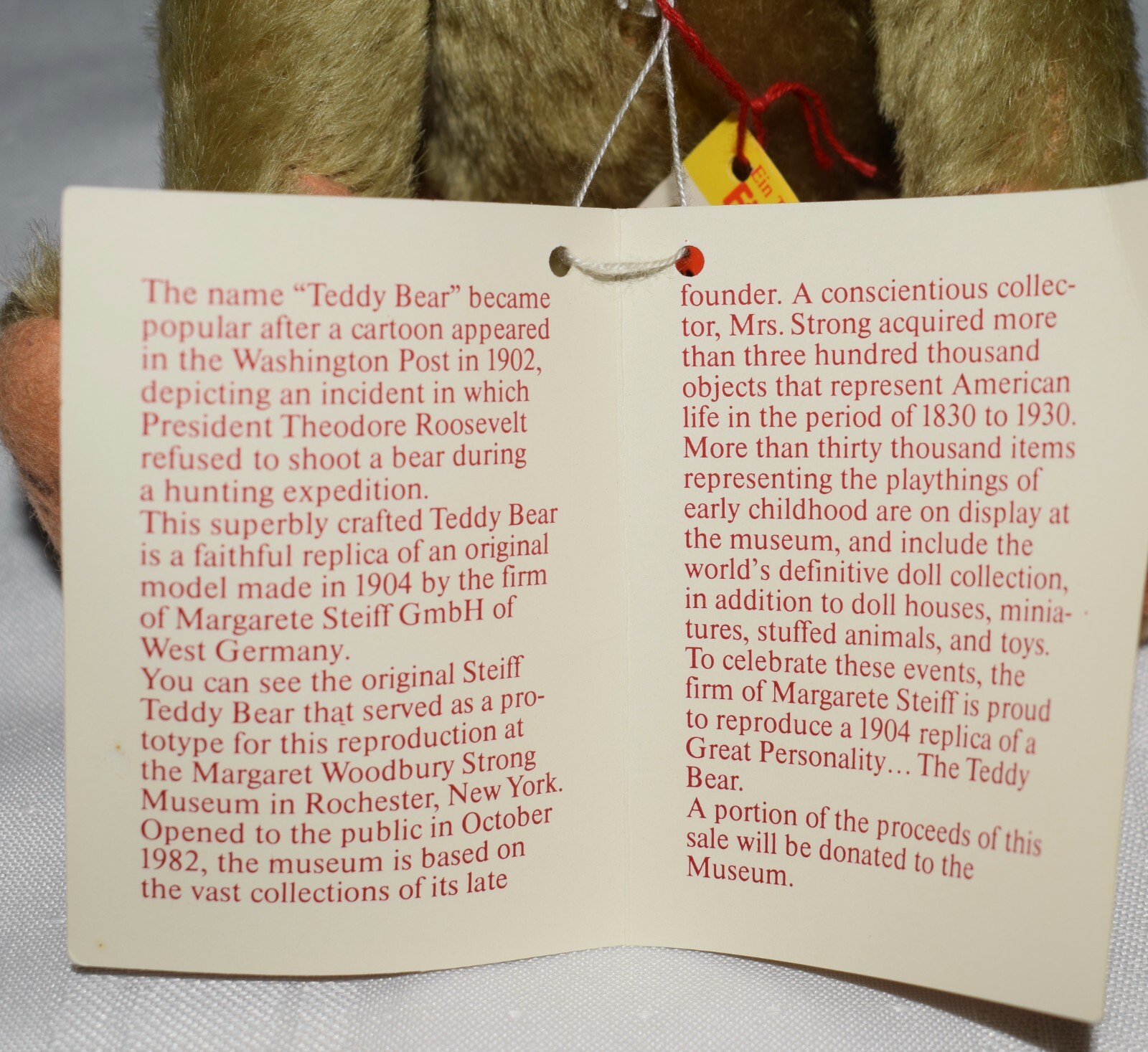 1984 Steiff 9 Margaret Strong 1904 Replica Classic Teddy Bear Tags 0155/26 HS7
