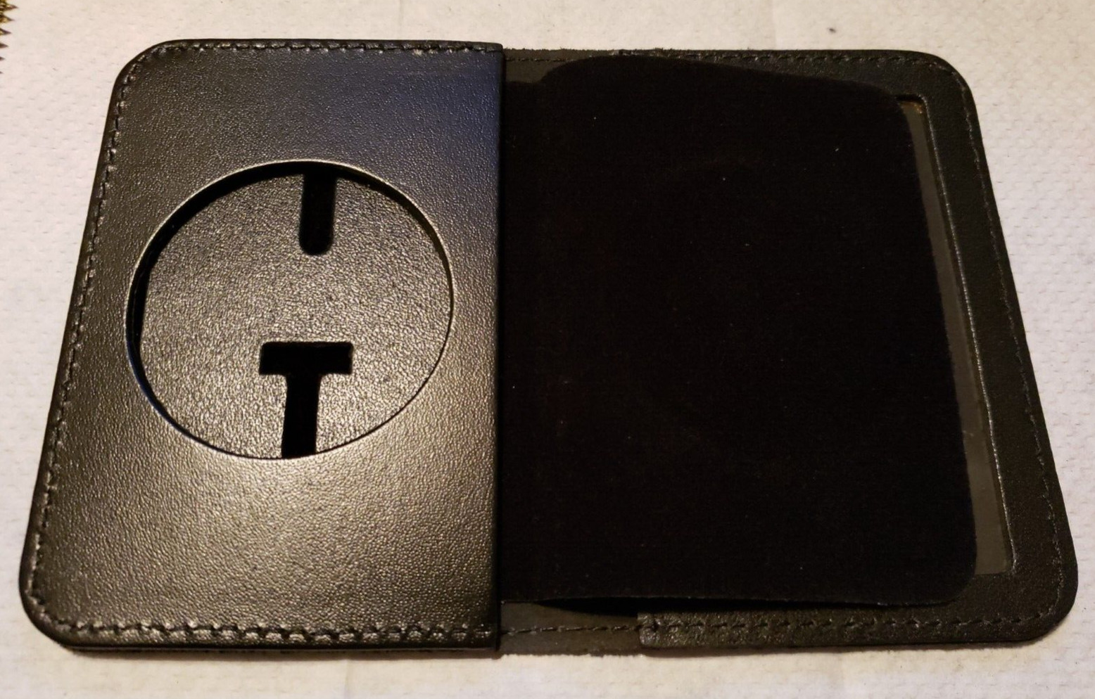 Leather Badge Holder Wallet Shield Security Black Case Officer ID Police Marshal