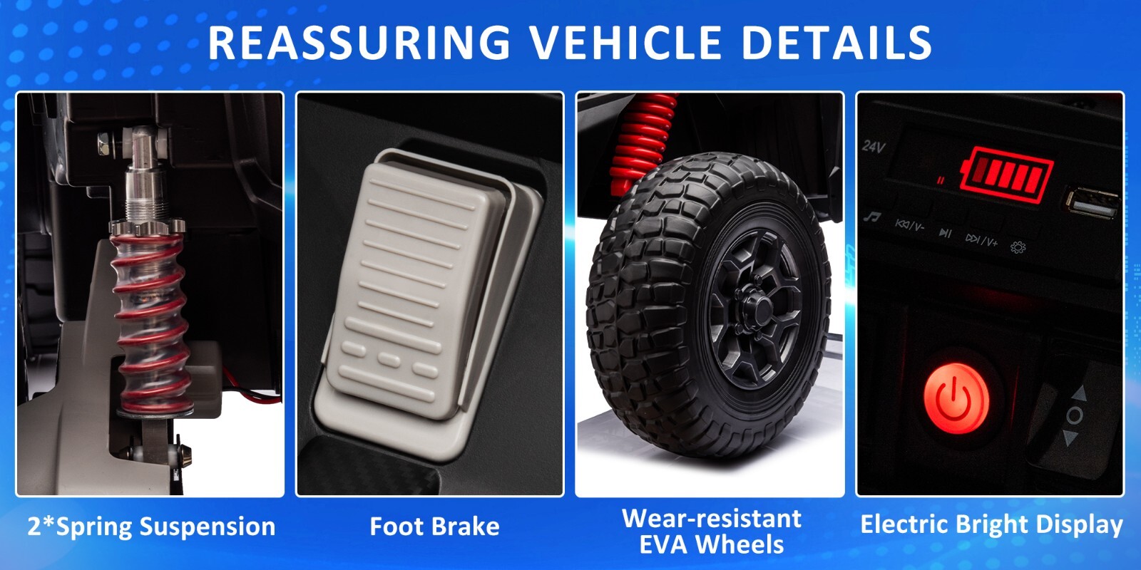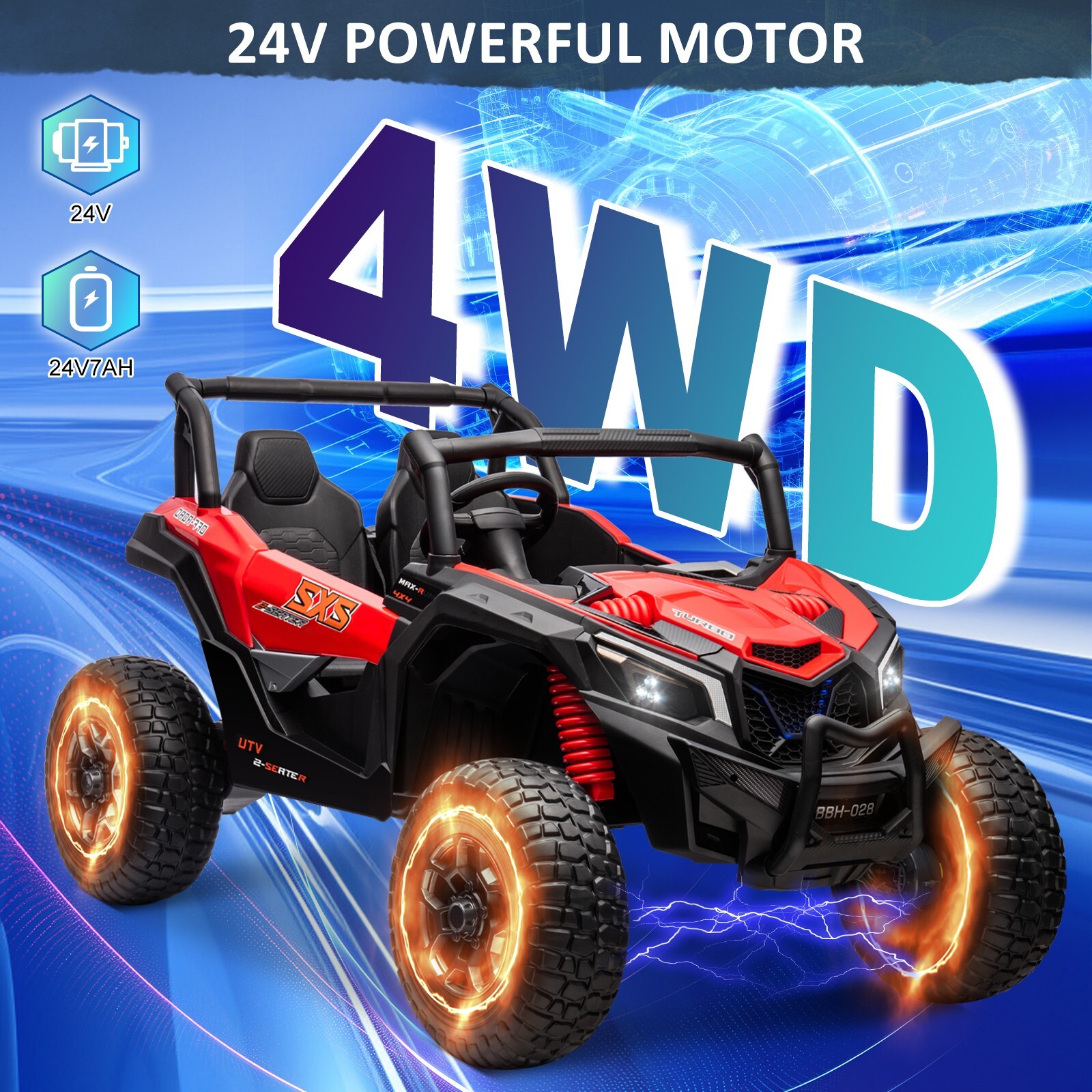 ZEOPHOL 24V Battery Kids Ride On Car UTV Truck 4WD 2-Seater 4X200W EVA Tires Red