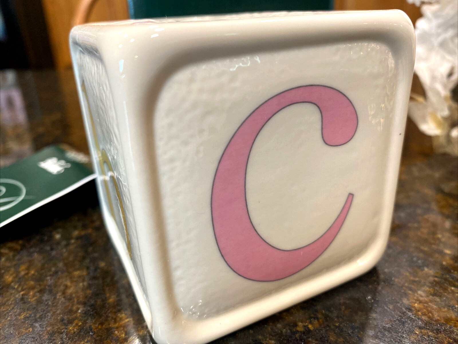 Belleek Fine China Baby Girl Money Box Bank, A B C Block in Original Box