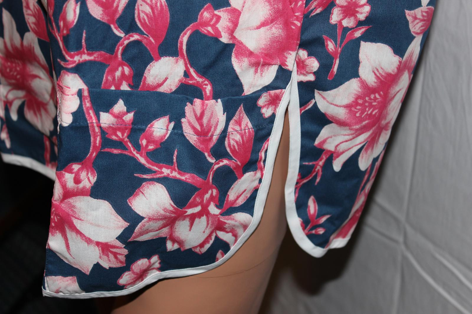 NEW EASY ESSENTIALS SNAP FRONT SMOCK COBBLER APRON NAVY WITH HIBISCUS M 3X 4X