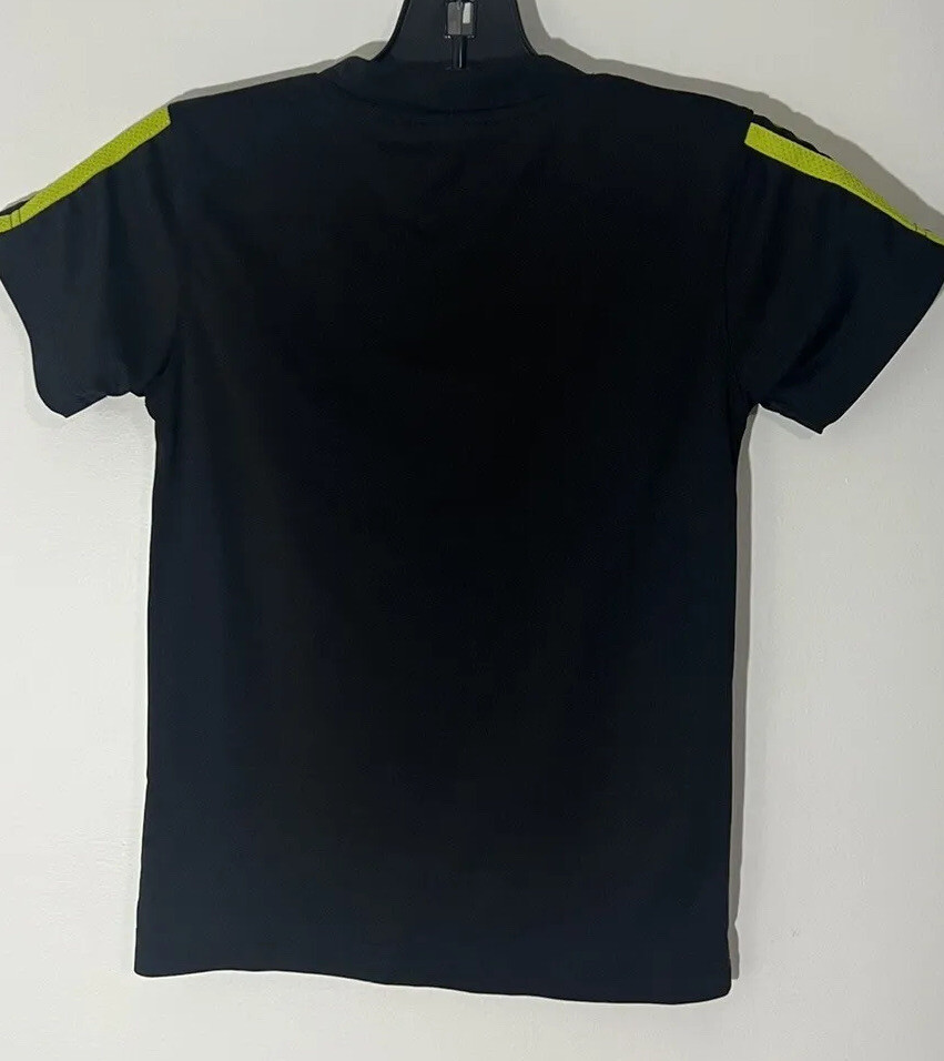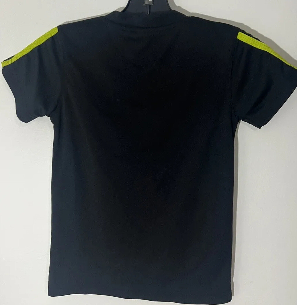 Adidas Short Sleeves Black Shirt with Neon Yellow Stripes Sz 4 youth On Sale WOW
