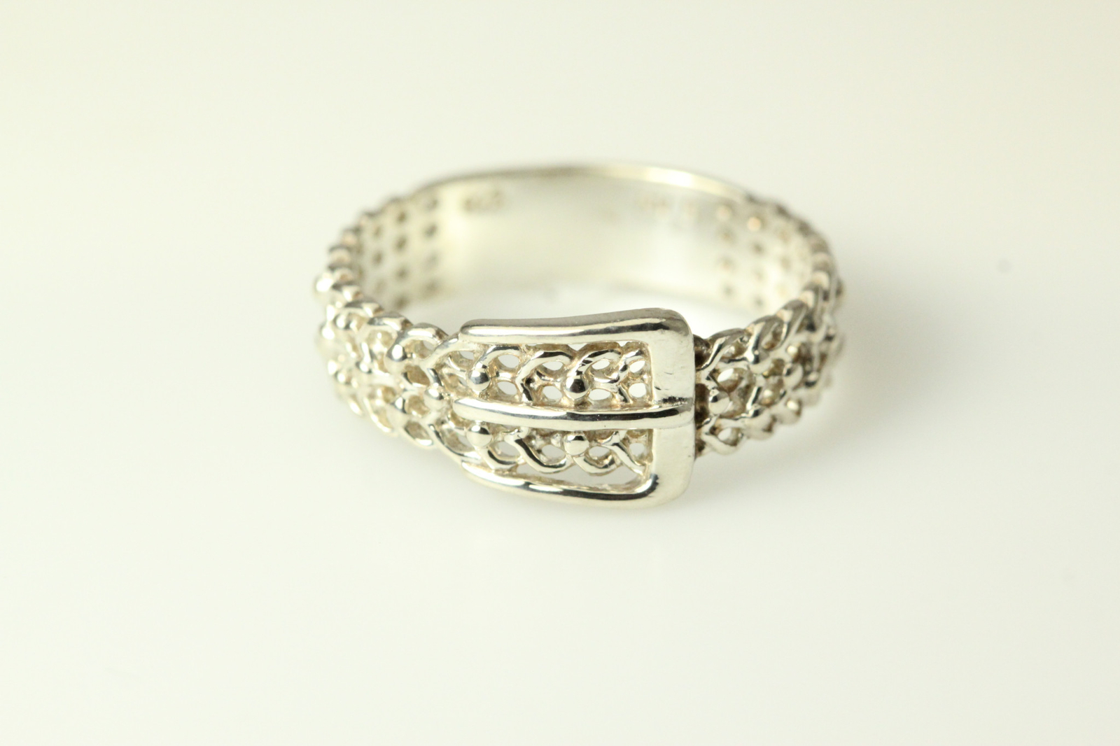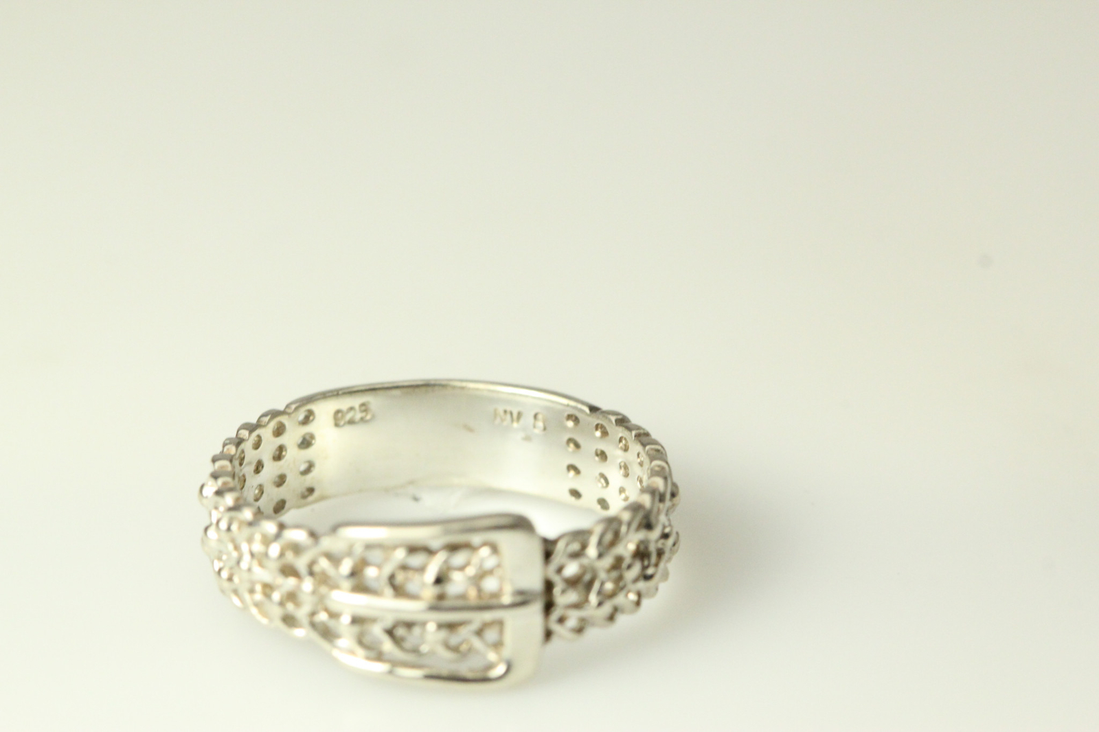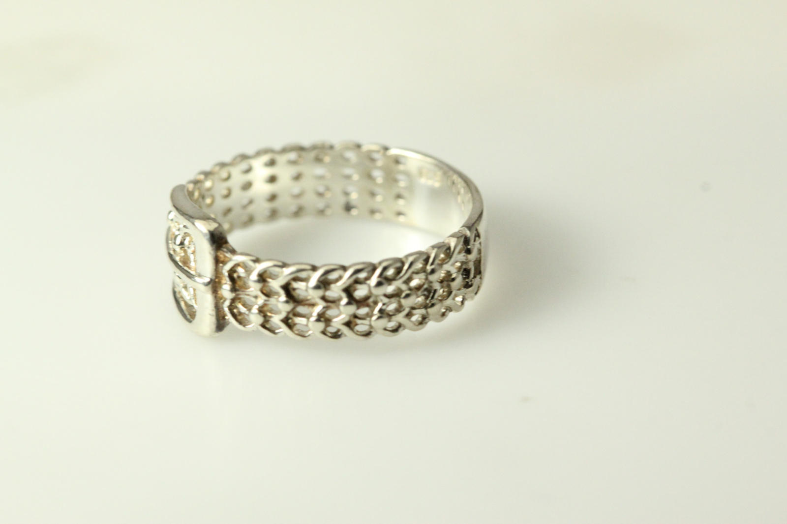 Sterling Silver 925 Size 8 Woven Belt Designed Ring 2.9 Grams RIN5501