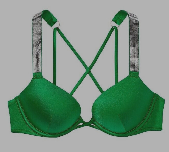 New Victorias Secret SWIM Shine Strap Bombshell Adds-2-Cup Strappy Back 34A Top