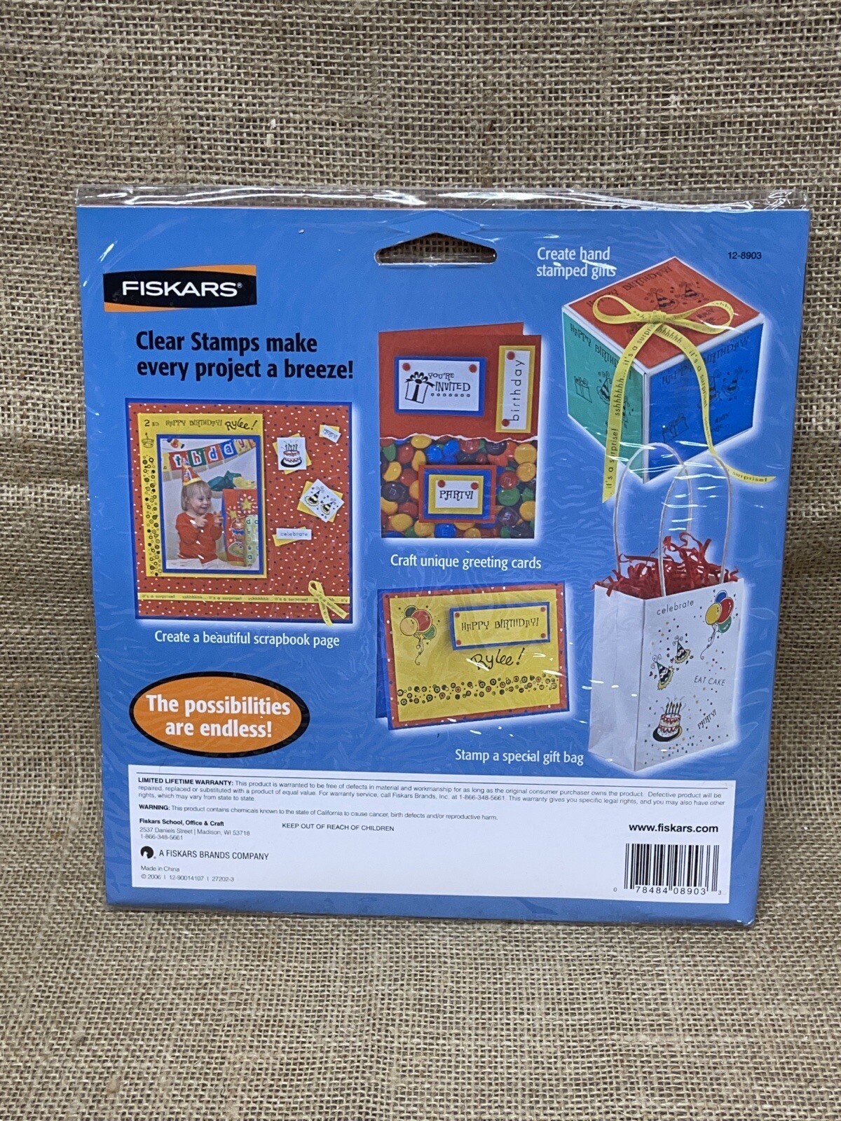 Fiskars Easy Stamp Press Clear Stamps Birthday Set Of 45, New Balloons, Cake
