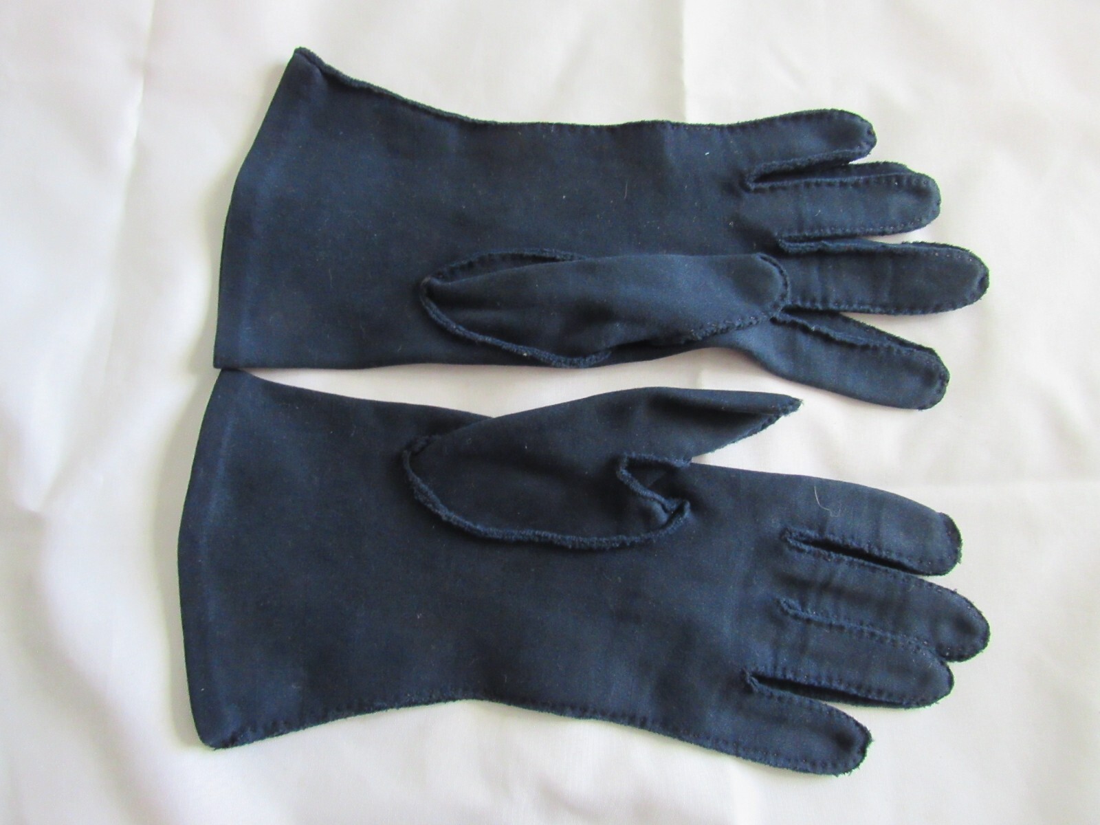 как выглядит ELVETTE DAWNELLE VINTAGE NAVY BLUE WRISTLET GLOVES USA HAND SEWN SIZE SMALL фото