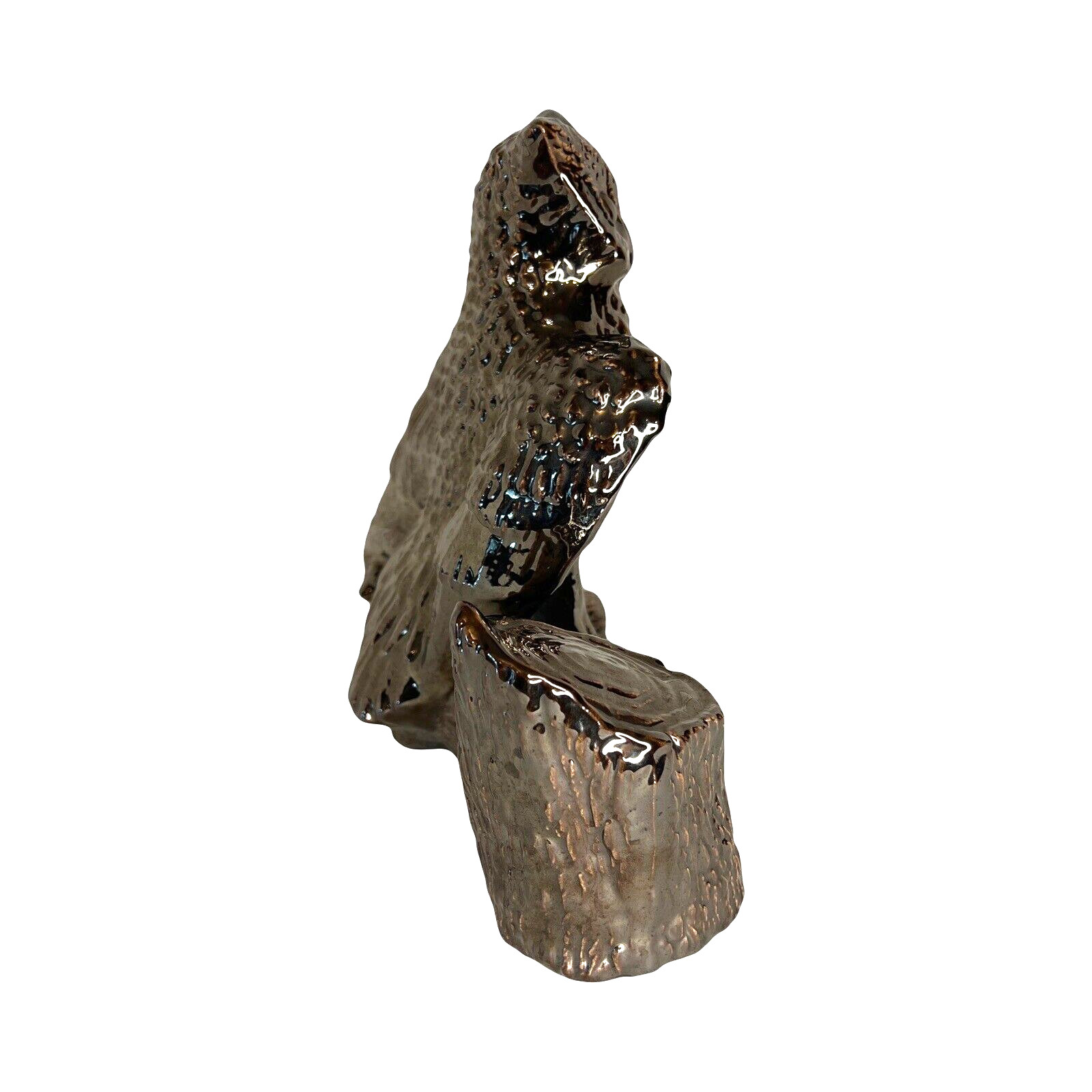 как выглядит MCM VTG Metallic Glazed Ceramic Owl on Log 8.5"Hx10"Lx5"W фото