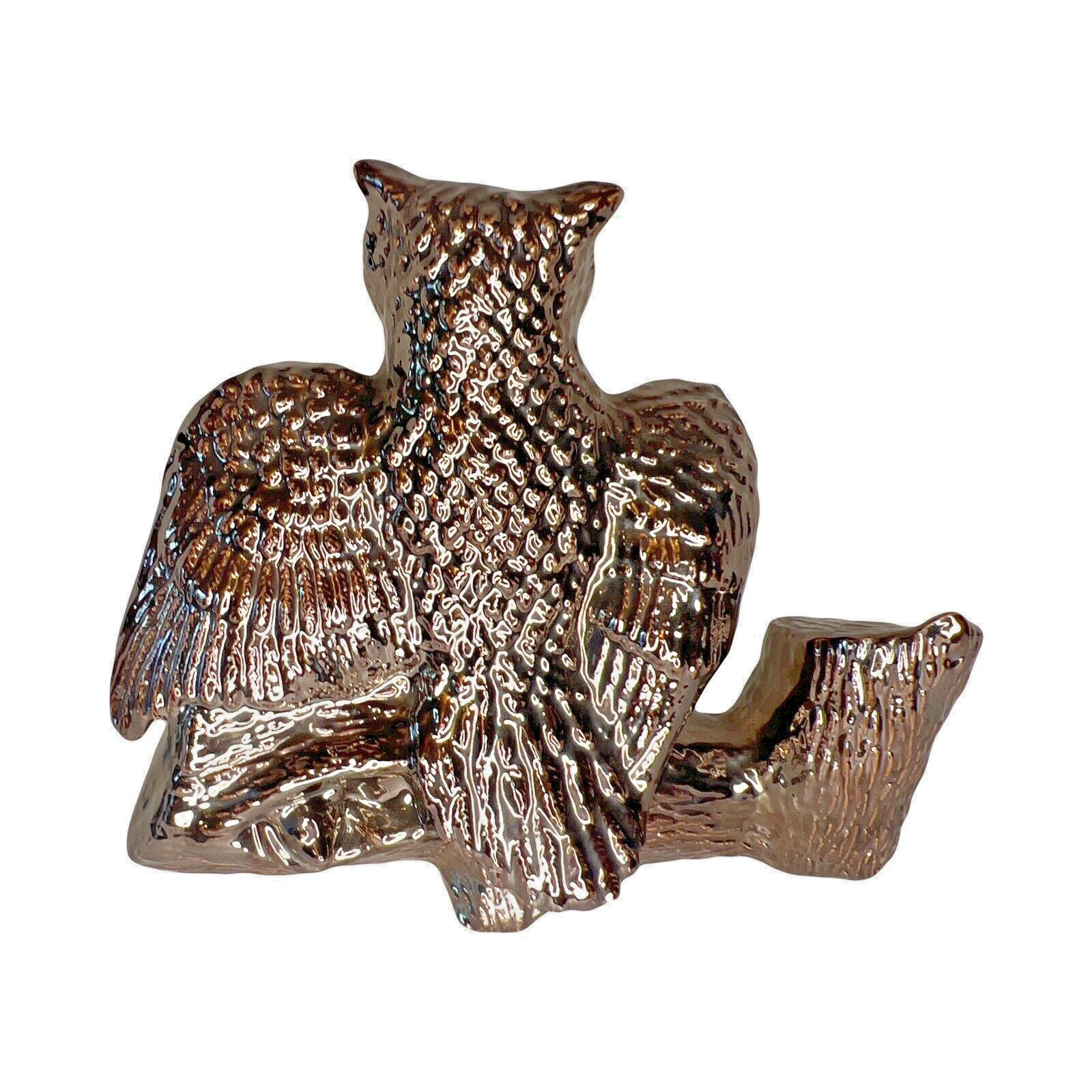 MCM VTG Metallic Glazed Ceramic Owl on Log 8.5"Hx10"Lx5"W