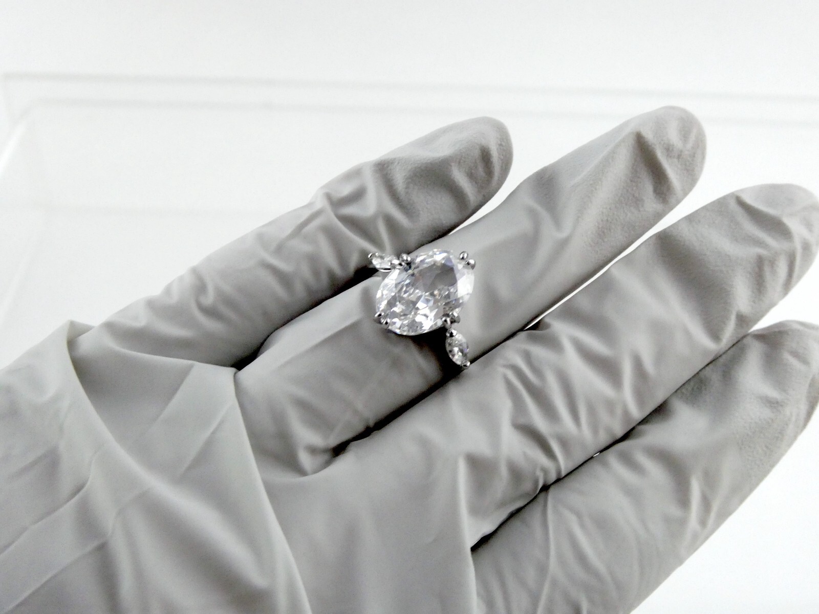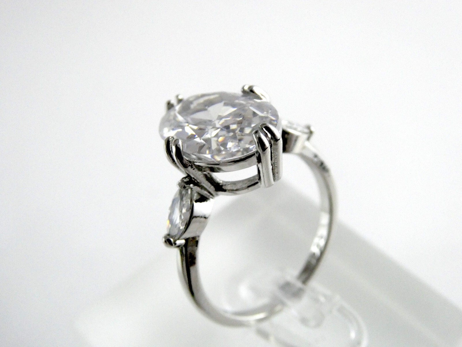 как выглядит Sterling Silver 3 Stone White Cubic Zirconia Cocktail Ring 925 Size 8 4.3g CZ фото
