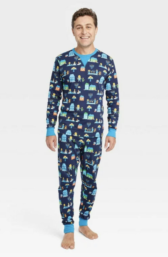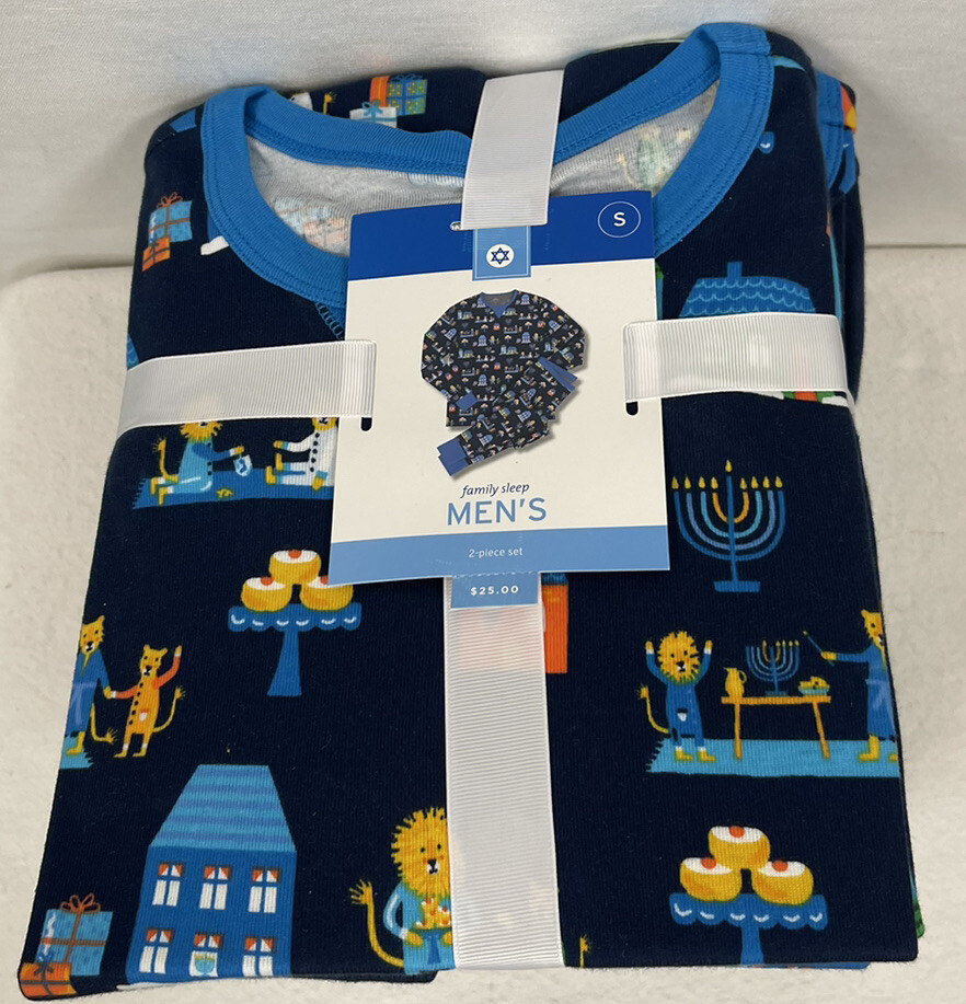 как выглядит Hanukkah Print 2 Piece Pajama Set - Navy Blue Menorah/ Lion Print NWT XL фото