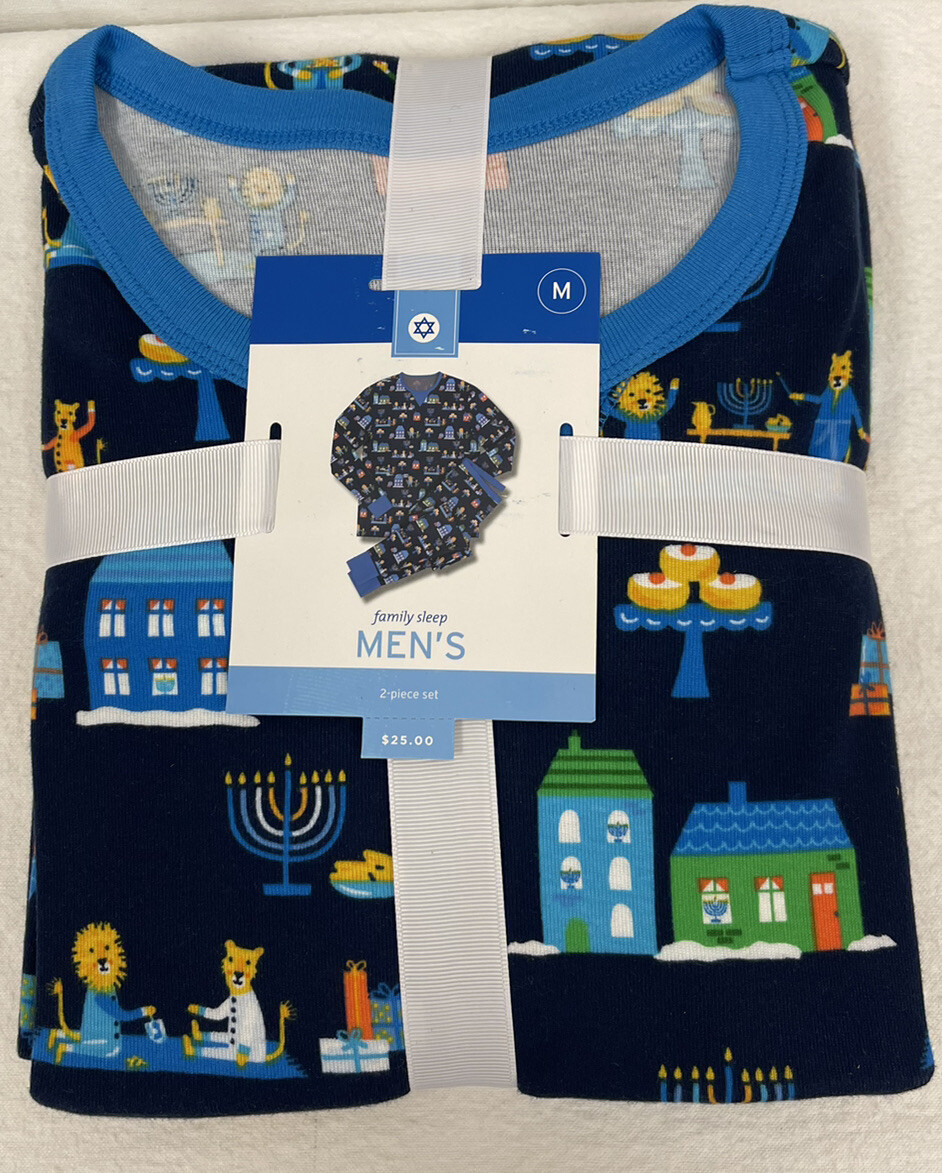 Hanukkah Print 2 Piece Pajama Set - Navy Blue Menorah/ Lion Print NWT XL