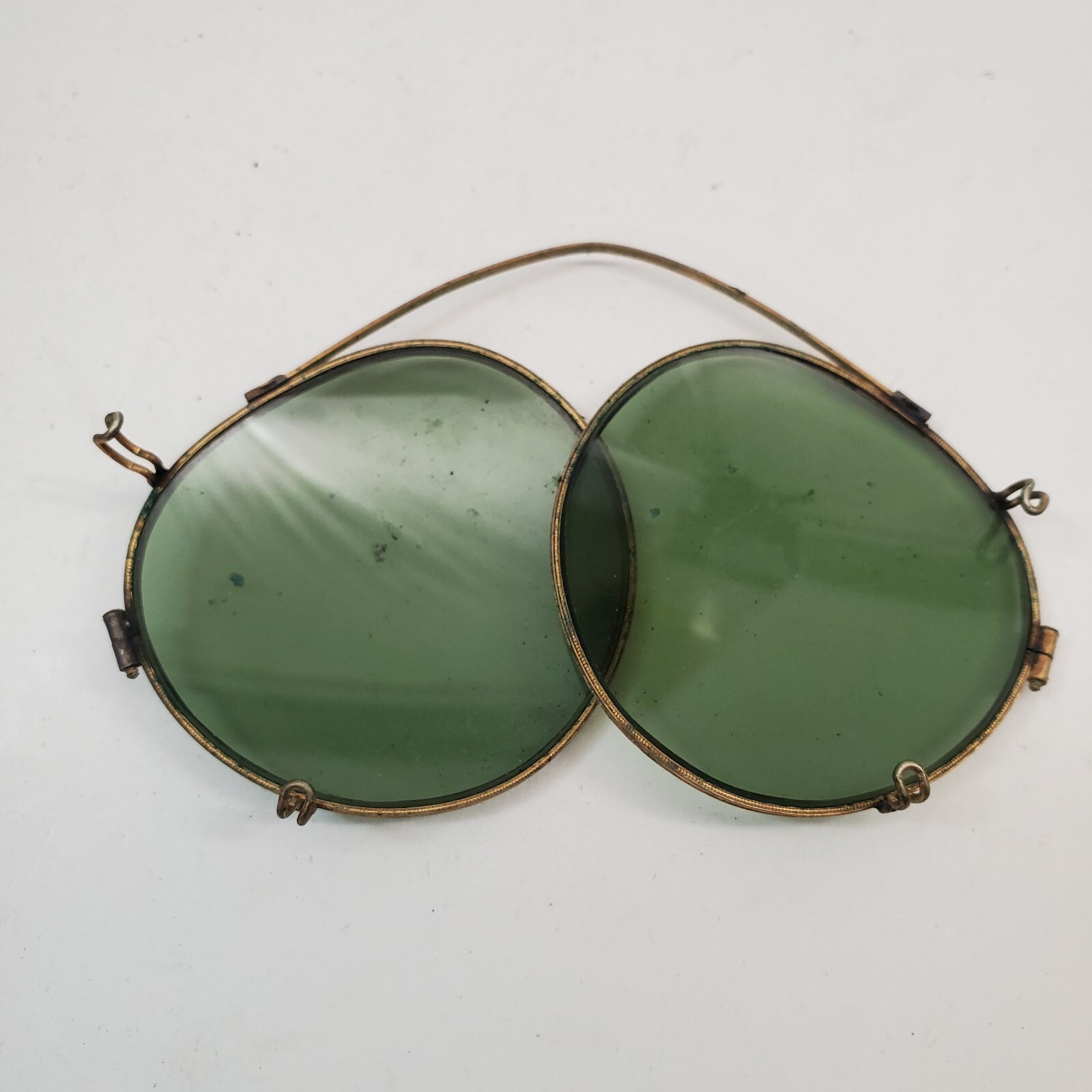 как выглядит Vintage Art Deco Clip-On Sunglasses Brass Frames Round Green Steampunk w/ Pocket фото