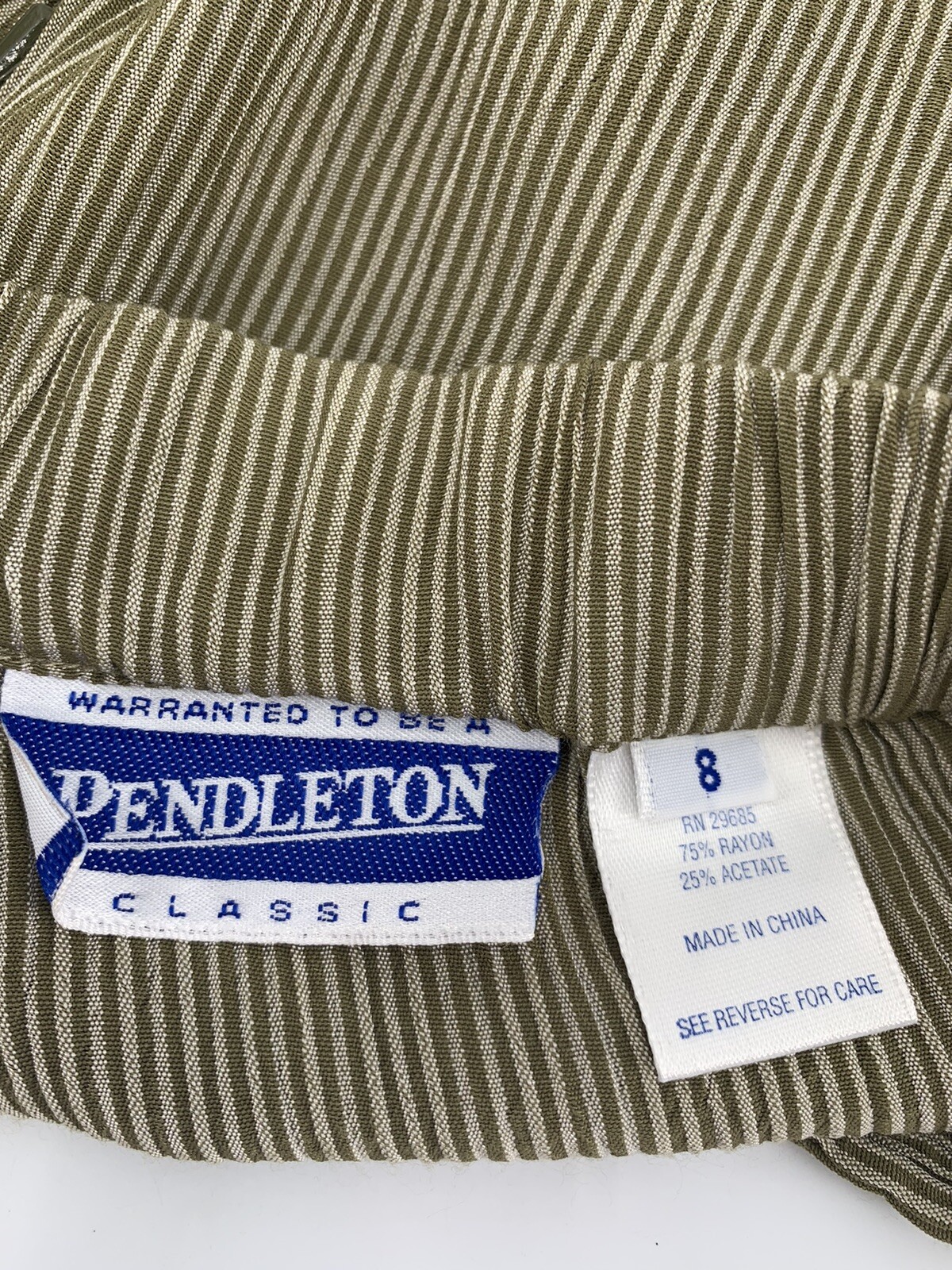 как выглядит Vintage Pendleton Womens Pin Striped Pants Size 8 Sage Green Beige Rayon Acetate фото