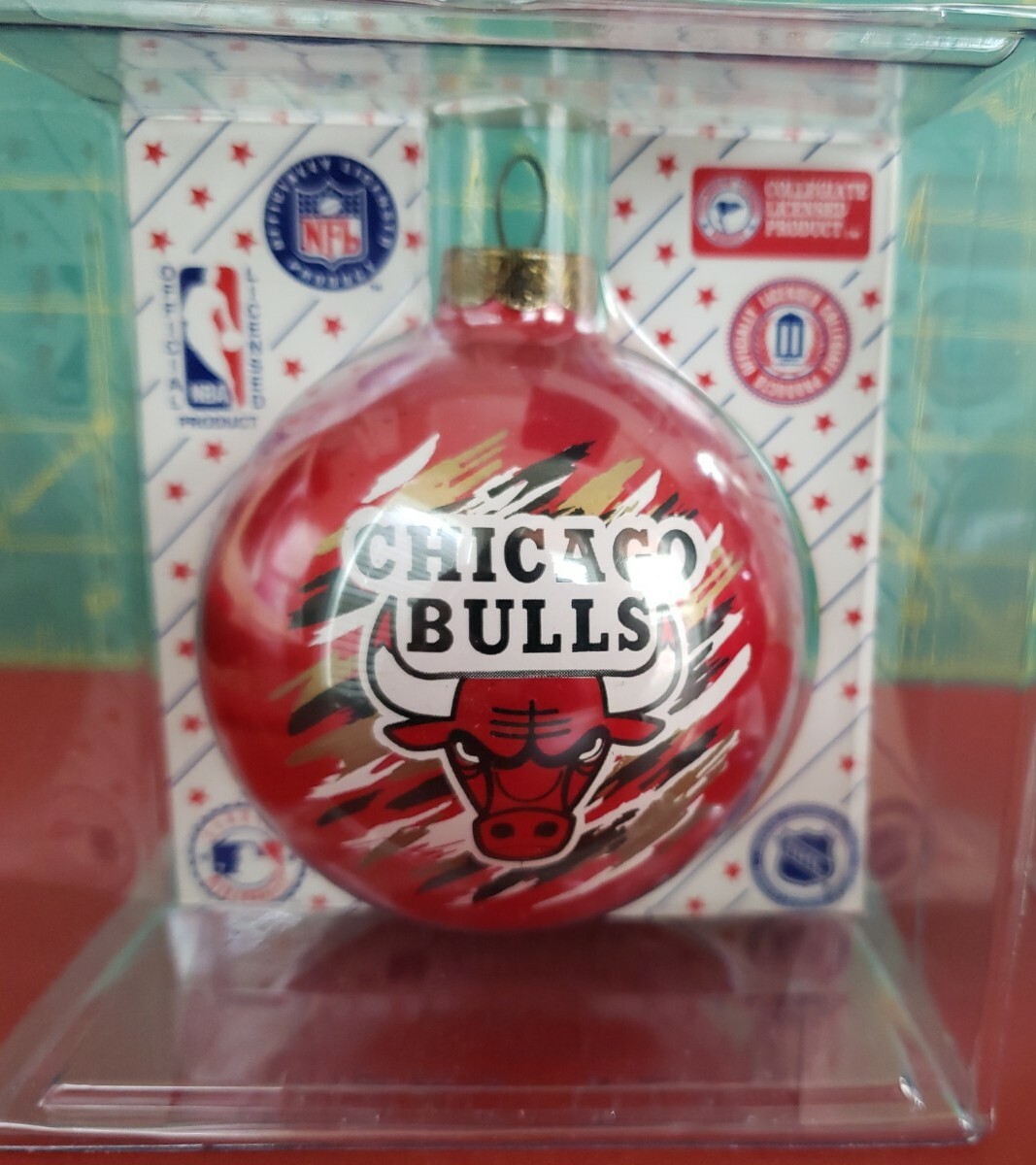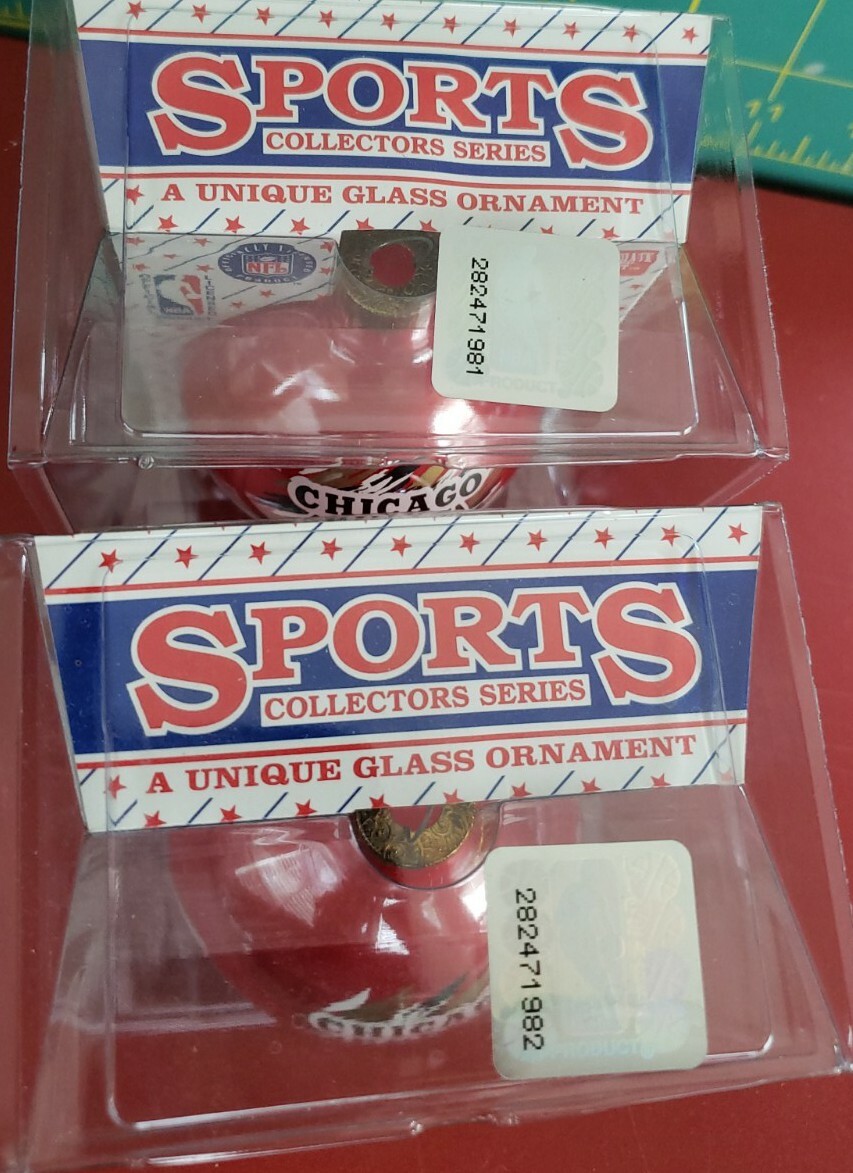Chicago Bulls Vintage 90s 1990s Red Glass NBA Christmas Tree Ornament Lot x 2