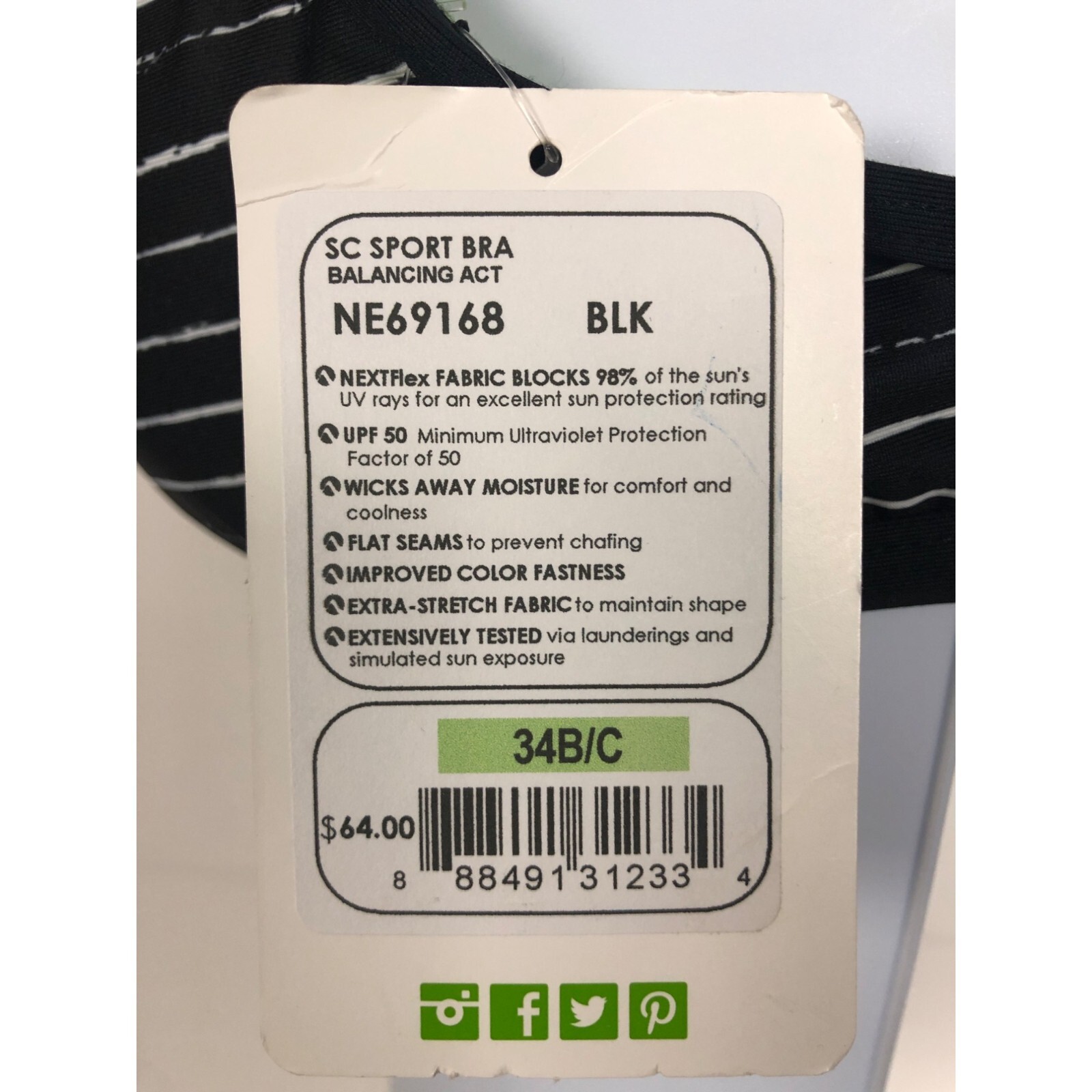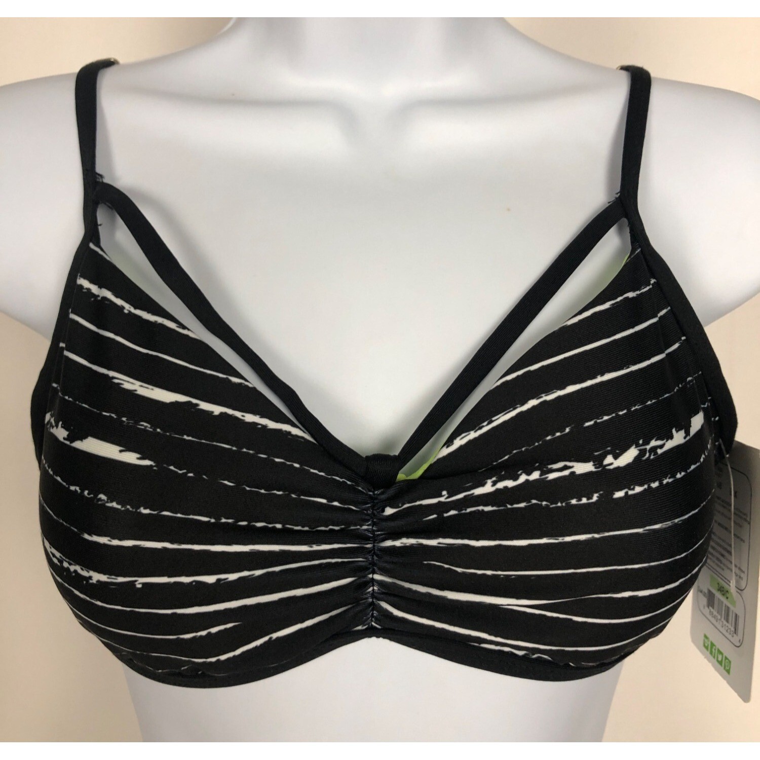 Next Women Bikini Top Size 34 B or C Black White Stripe Green Lining New w Tags