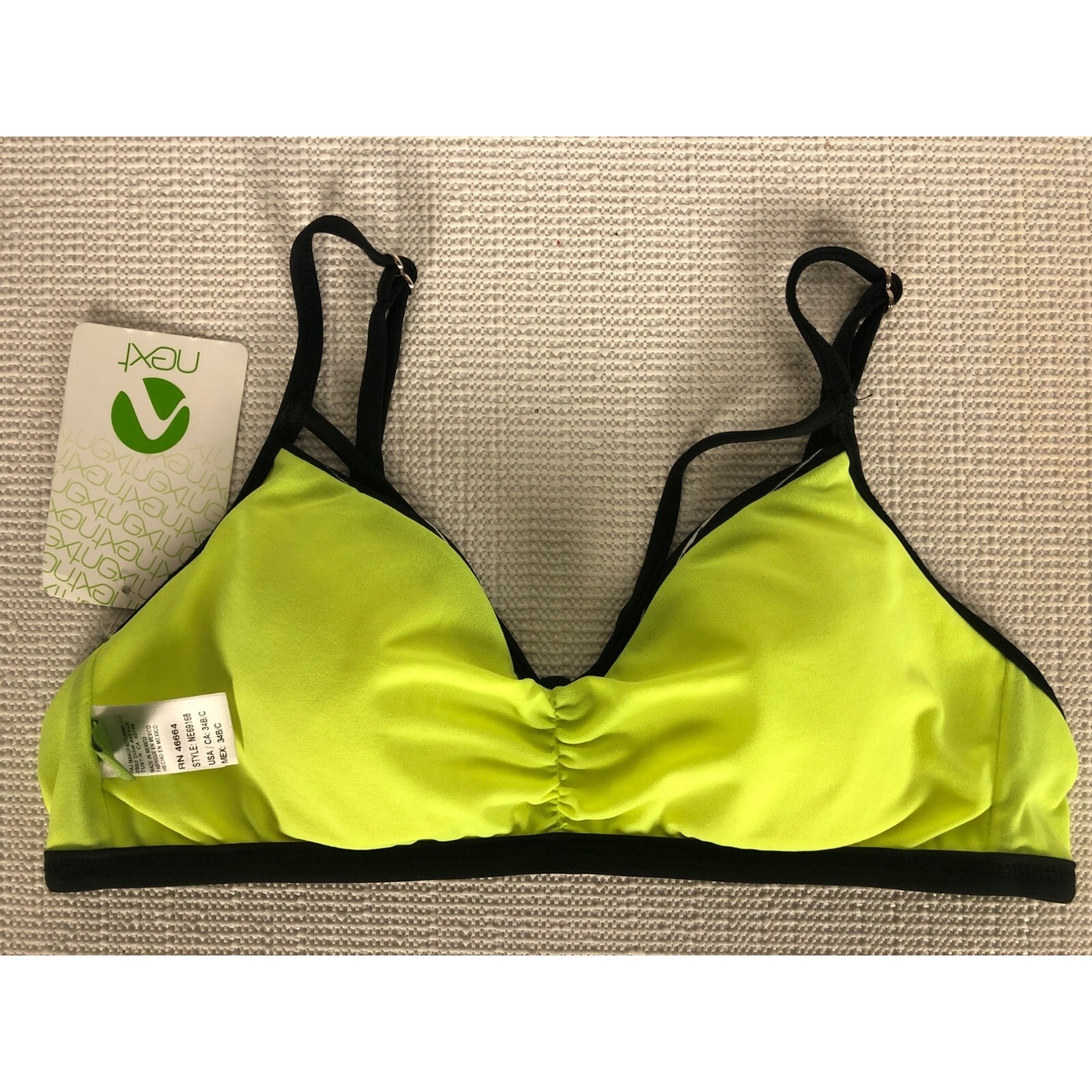 как выглядит Next Women Bikini Top Size 34 B or C Black White Stripe Green Lining New w Tags фото