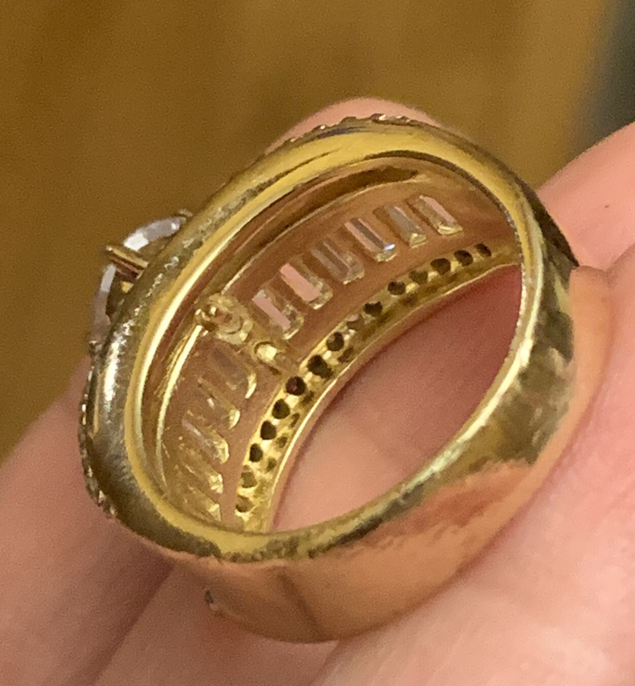 как выглядит Vermeil sterling silver 8mm Pave cubic zirconia CZ Size 8 фото