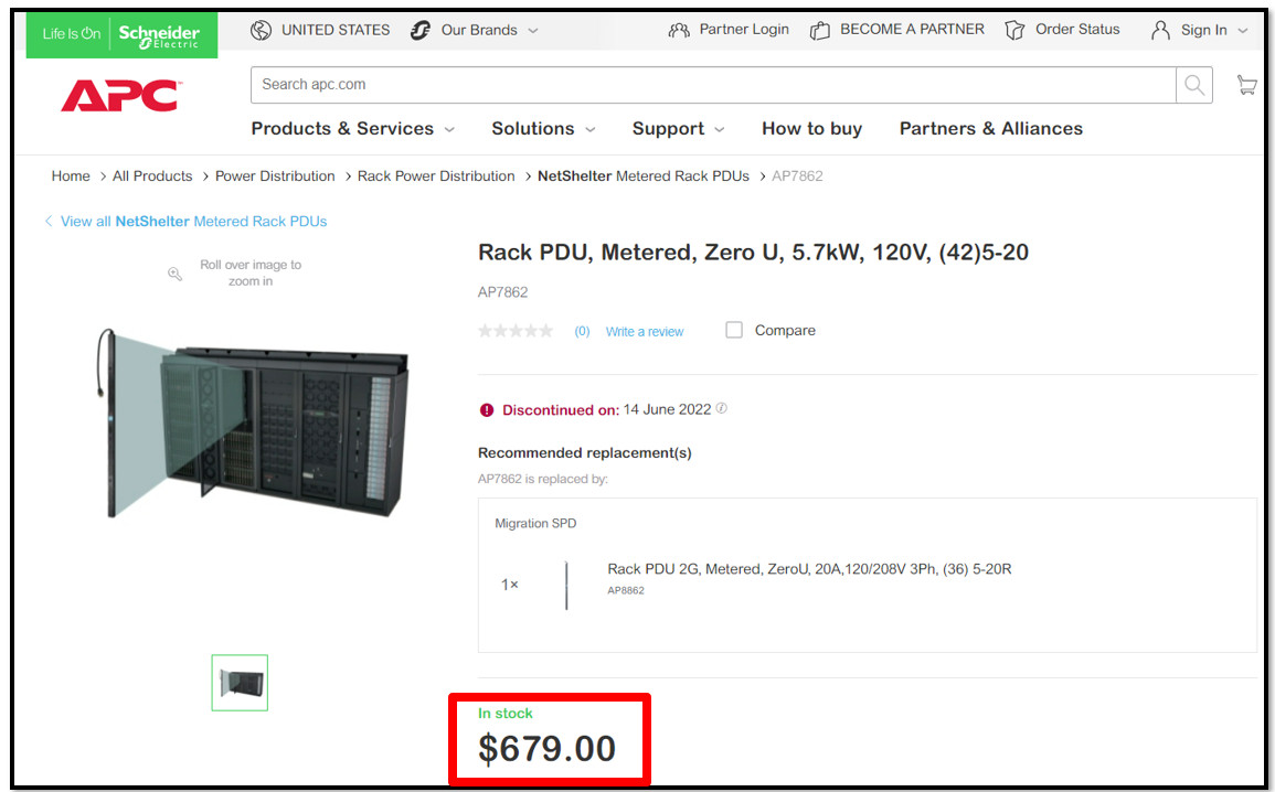 APC Metered PDU Rack, 120 V 42 5-20 Part Number: AP7862