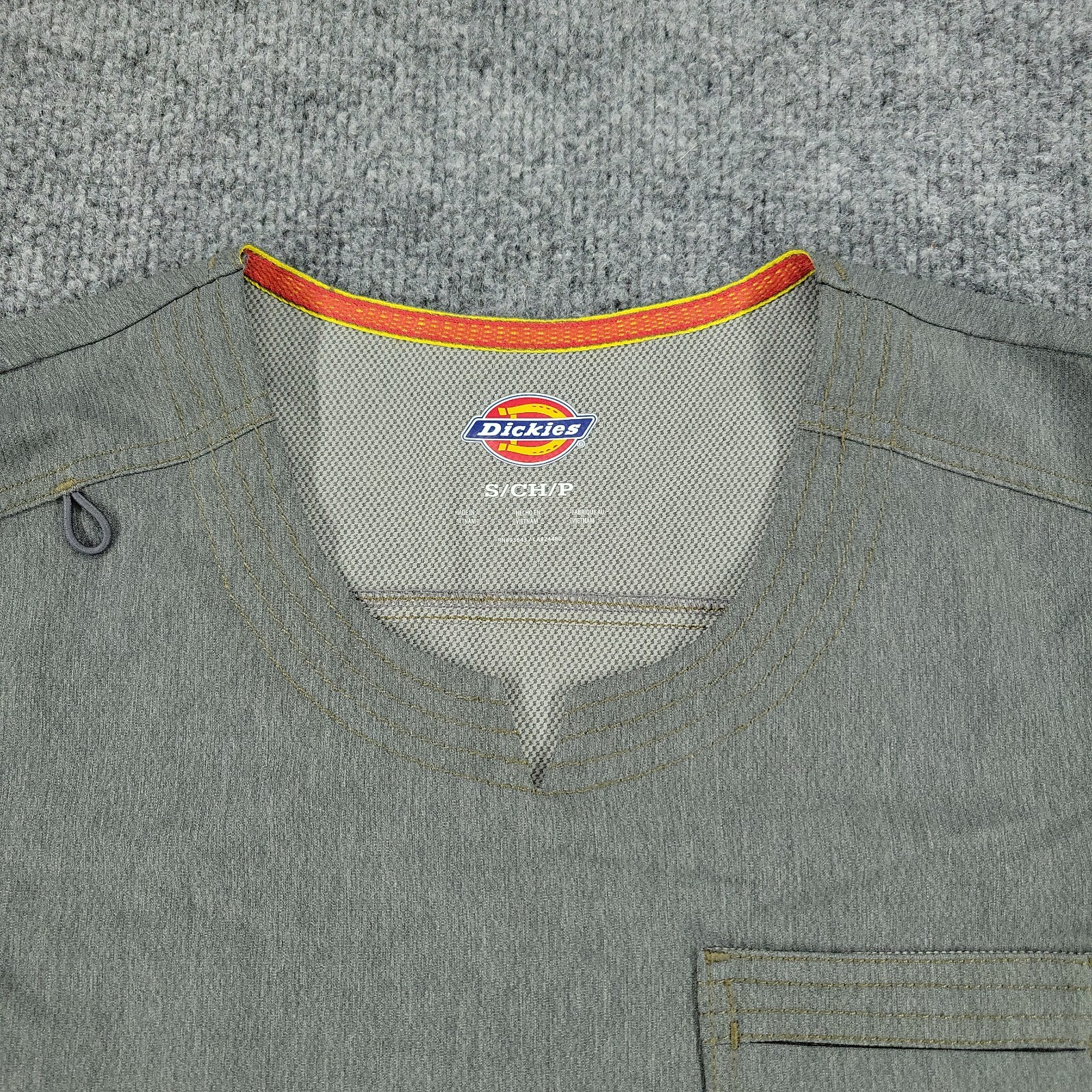 как выглядит Dickies Scrub Top Shirt Womens Small Gray Stretch Short Sleeve Medical Uniform фото
