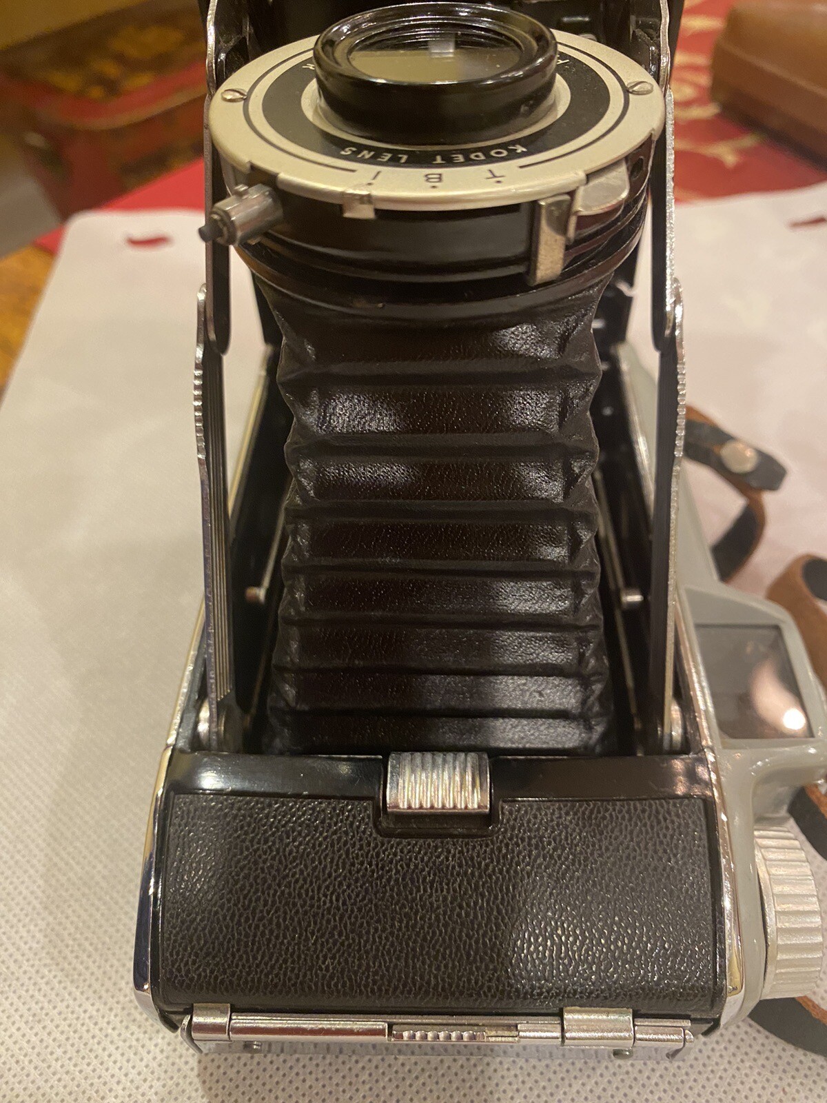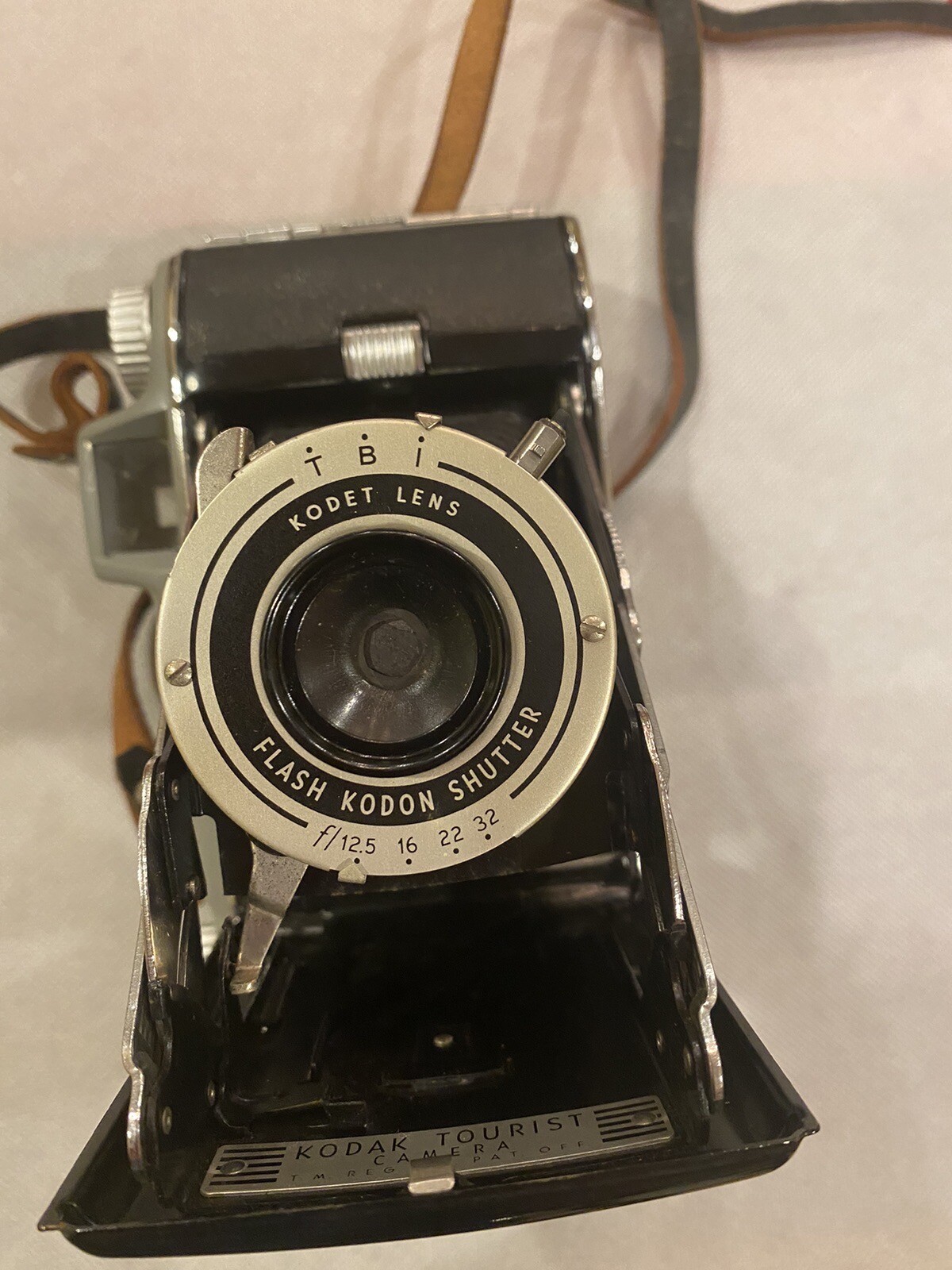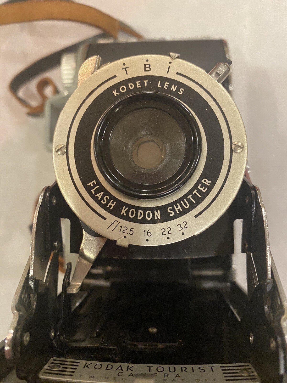 VINTAGE KODAK TOURIST FOLDING CAMERA KODET LENS F/12.5 FLASH KODON SHUTTER Case