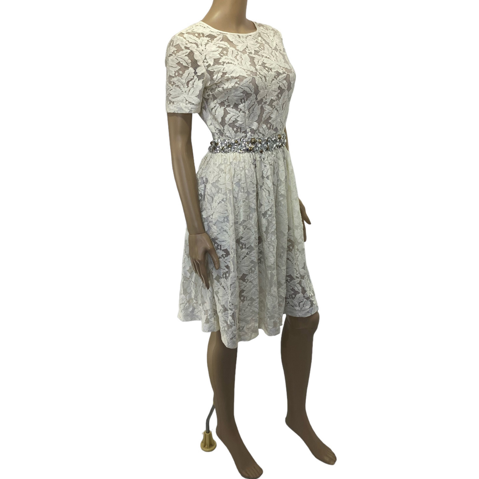 как выглядит Blugirl by BluMarine Ivory White Embellished Jeweled Lace Dress фото